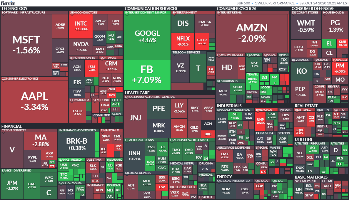 一方、INTCやIBM、NFLX、PMあたりは決算やガイダンスがコンセンサス以下で下落している。(出典:finviz.com)