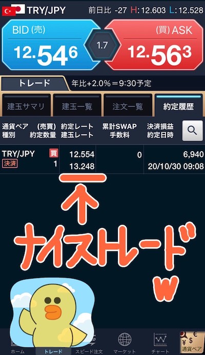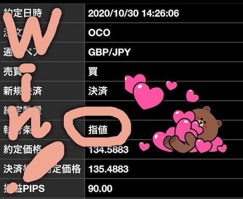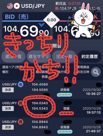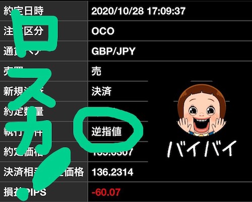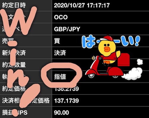10月23日にエントリーした売りが、10月27日に利益確定。