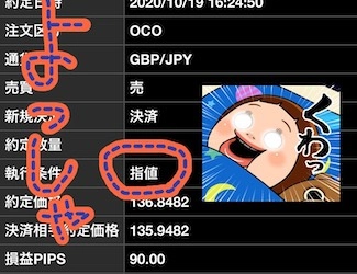 10月23日にエントリーした売りが、10月27日に利益確定。