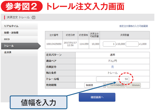 なお、各FX会社によって、入力幅の最低幅が決められている場合がありますので、必ず確認しておきましょう(参考図②)。
