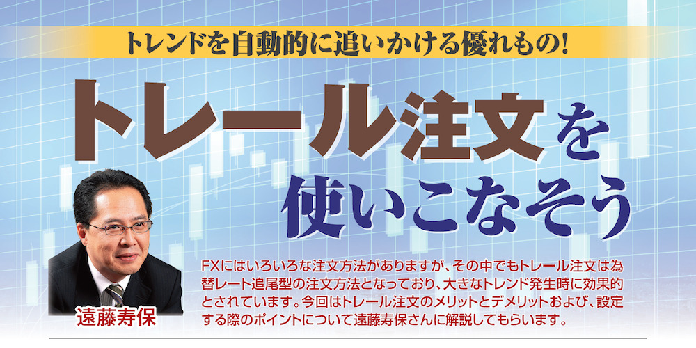 FXにはいろいろな注文方法がありますが、その中でもトレール注文は為替レート追尾型の注文方法となっており、大きなトレンド発生時に効果的とされています。今回はトレール注文のメリットとデメリットおよび、設定する際のポイントについて遠藤寿保さんに解説してもらいます。