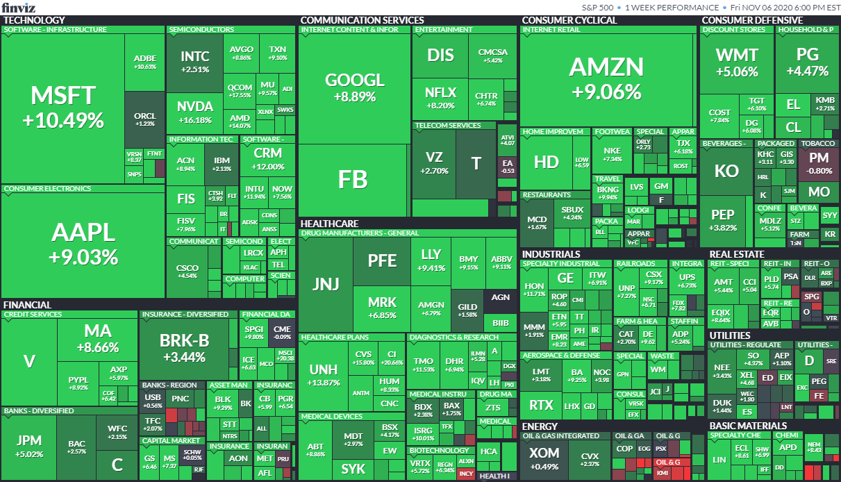 11月1週目は、週間でなんと7%超の大幅高となり、S&P500は3500ポイントを回復。