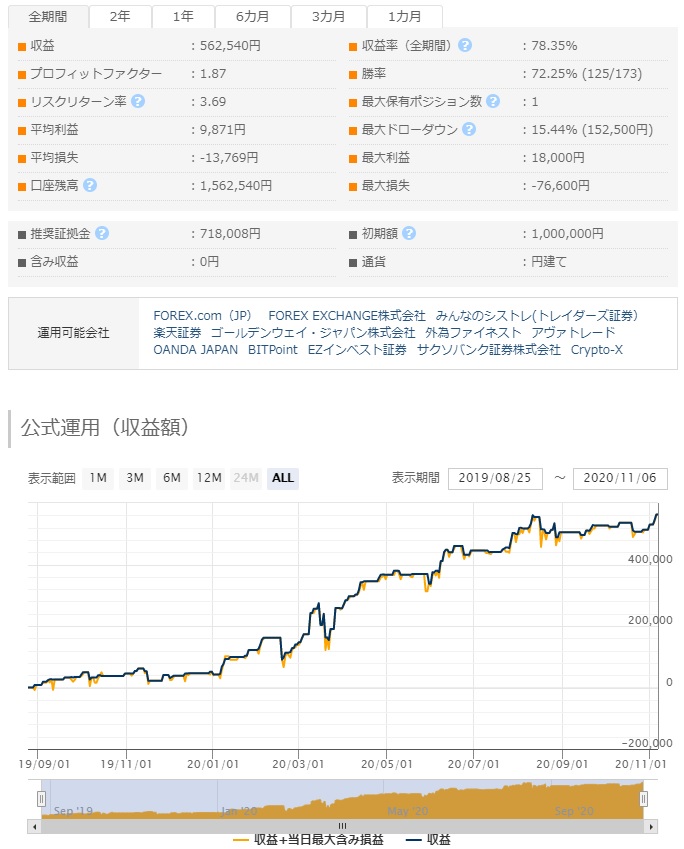 ナンピニア・ユロドルは現在、200名以上の方からの御愛顧を頂いております。そして、注目すべきは、「稼働率100%」という事です。その理由の1つにはフォワードが右肩上がりというのがございますが月ごとの獲