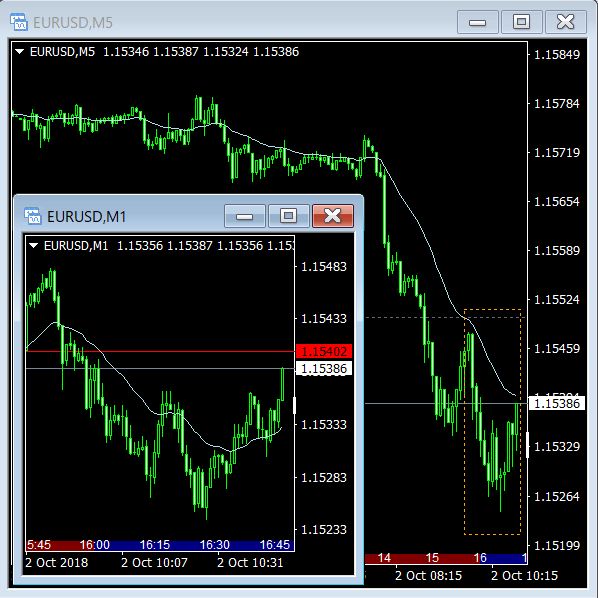 【インジケーター紹介】下位時間軸のチャートの表示範囲を自動で囲うインジケータ