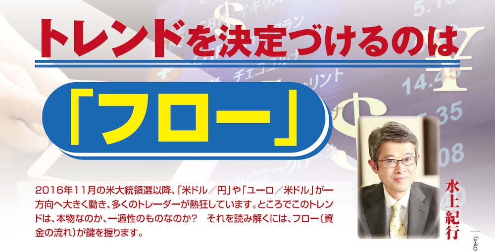 2016年11月の米大統領選以降、「米ドル/円」や「ユーロ/米ドル」が一方向へ大きく動き、多くのトレーダーが熱狂しています。ところでこのトレンドは、本物なのか、一過性のものなのか? それを読み解くには、フロー(資金の流れ)が鍵を握ります。