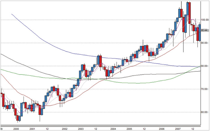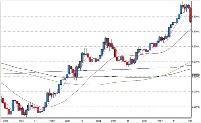 「ユーロ/米ドル」月足(2002年〜2008年)