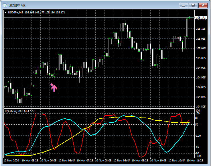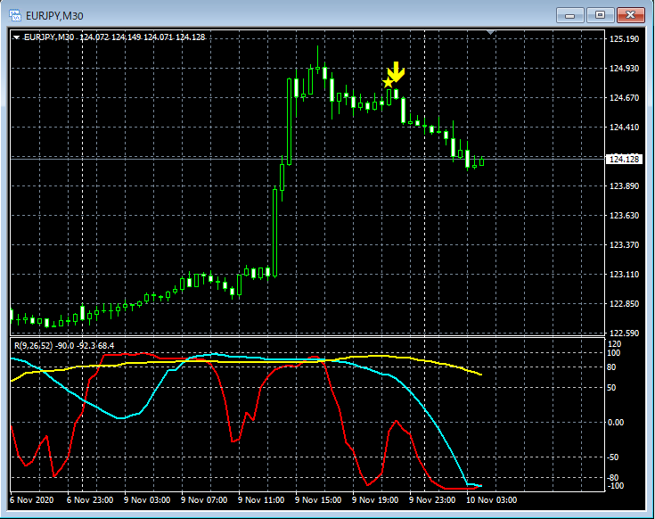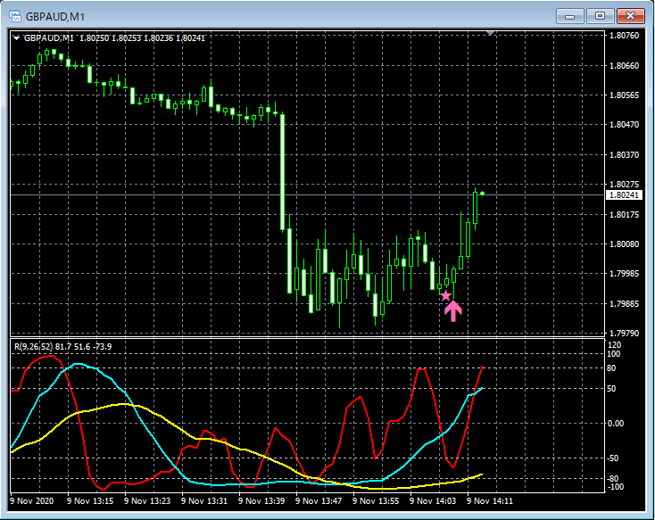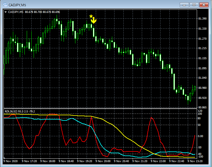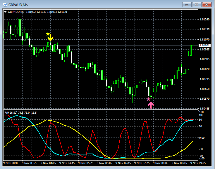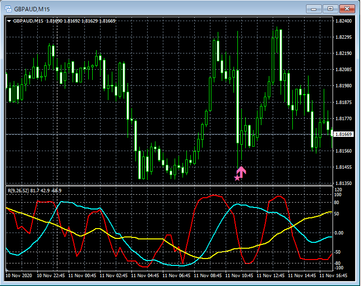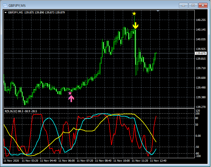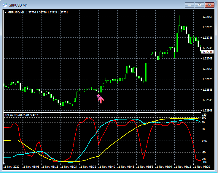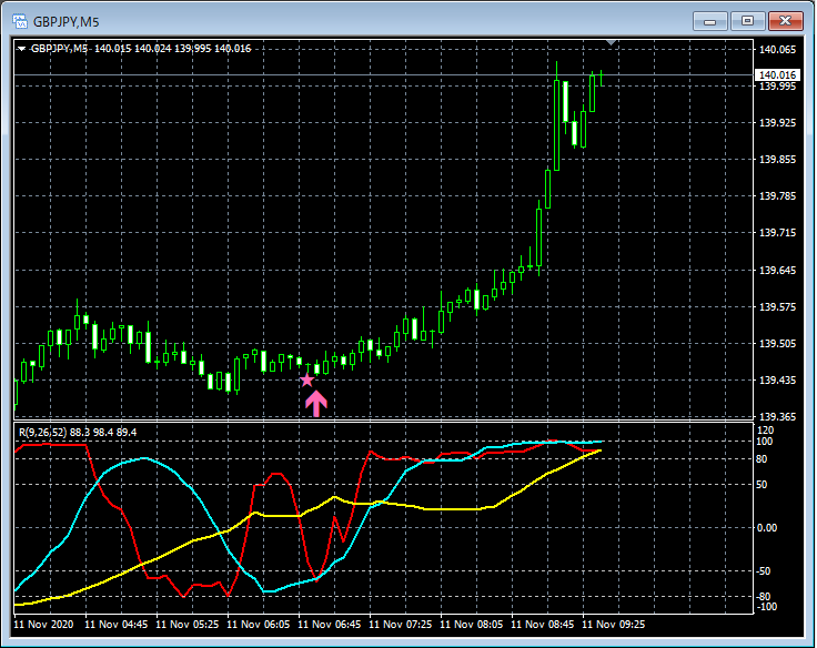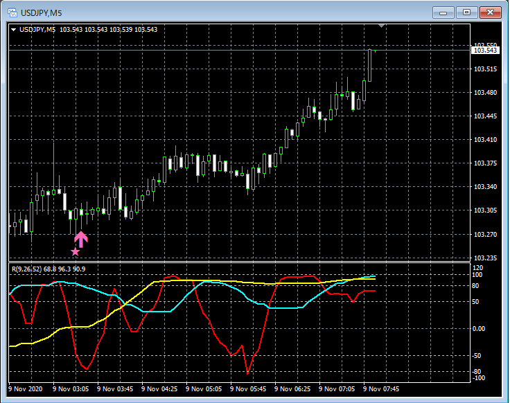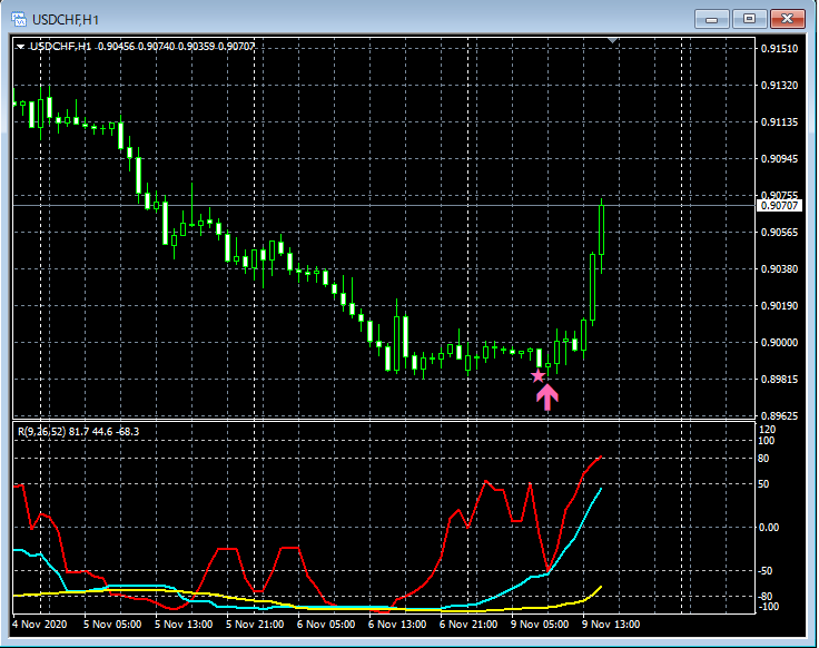 RCI3本ラインとの組み合わせで威力を発揮するインジケーター 11月9日~11月13日に見られたサインの例 (1)