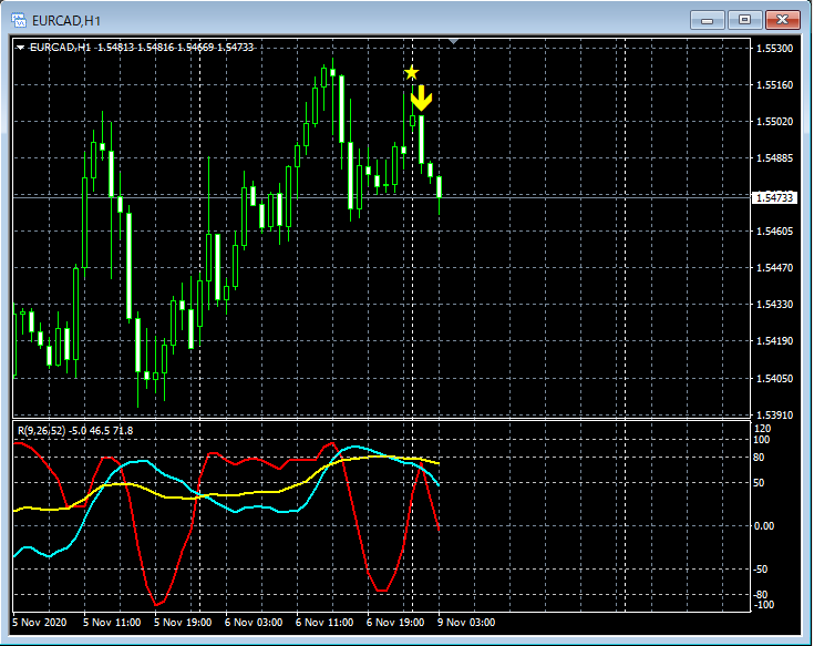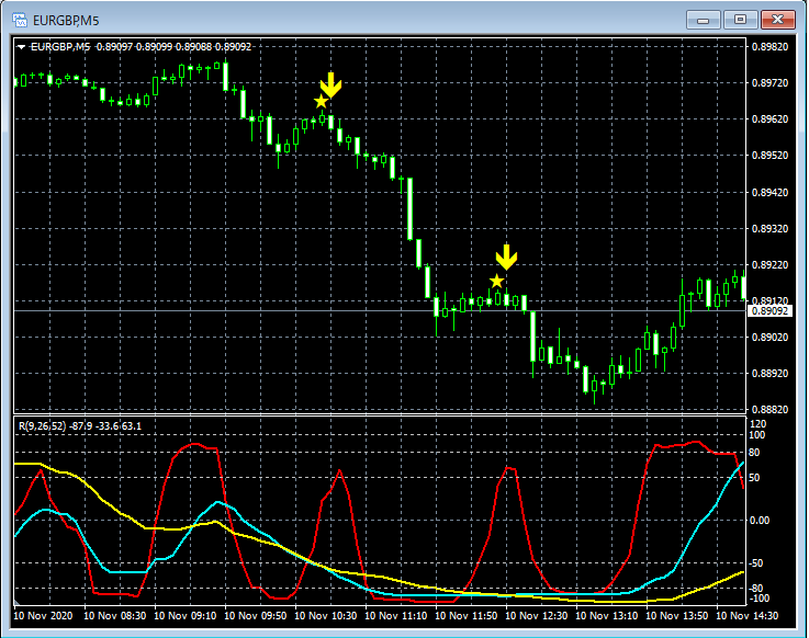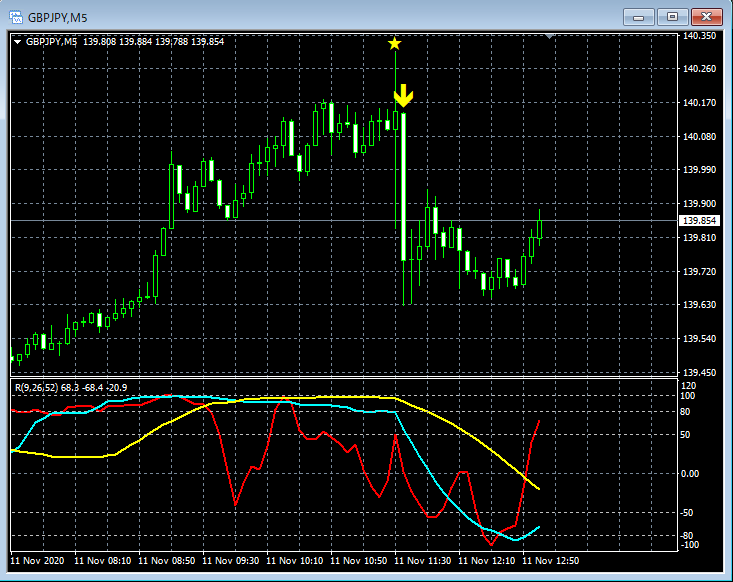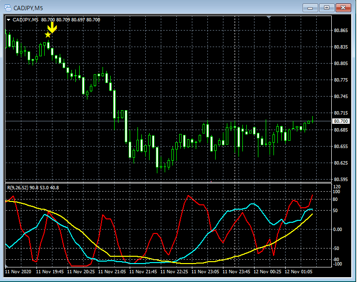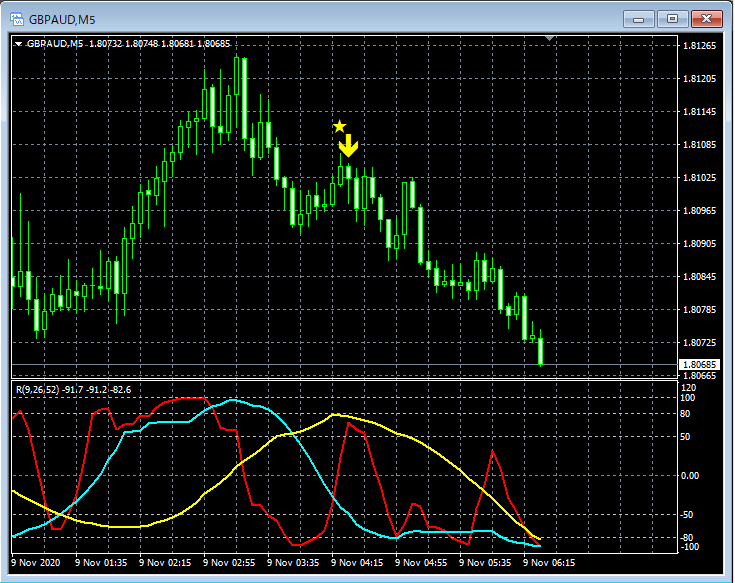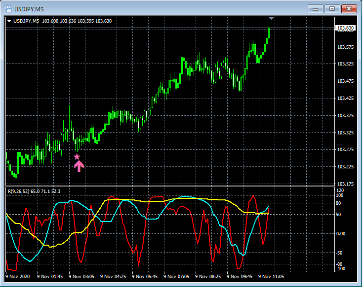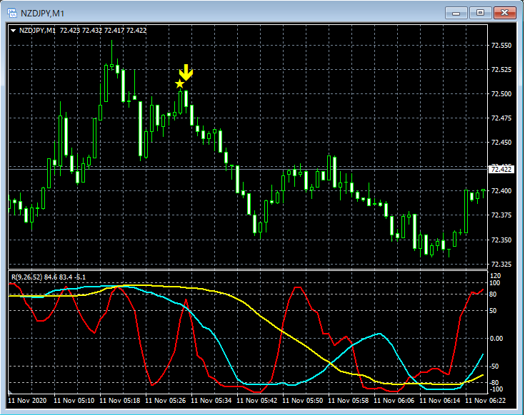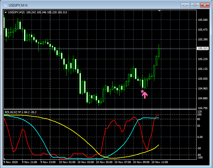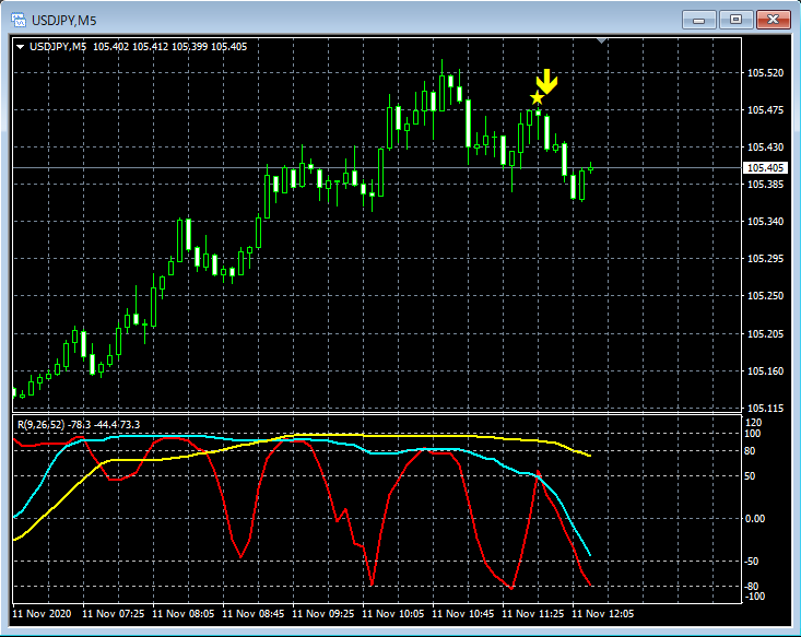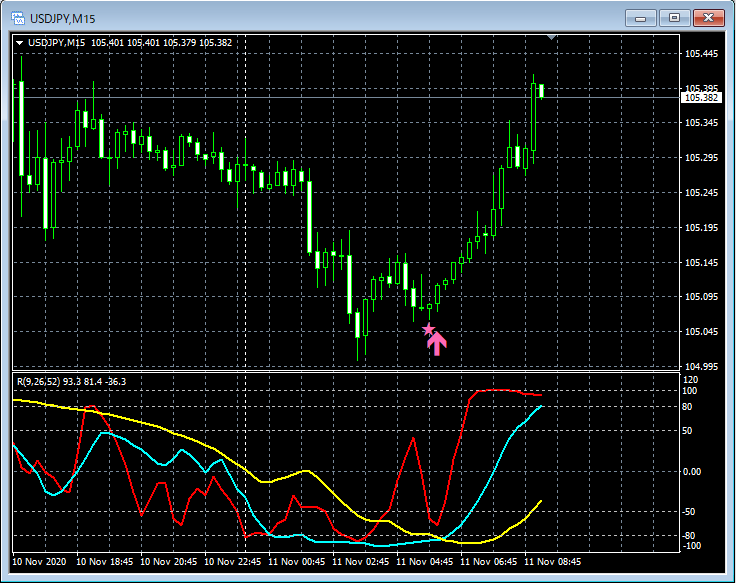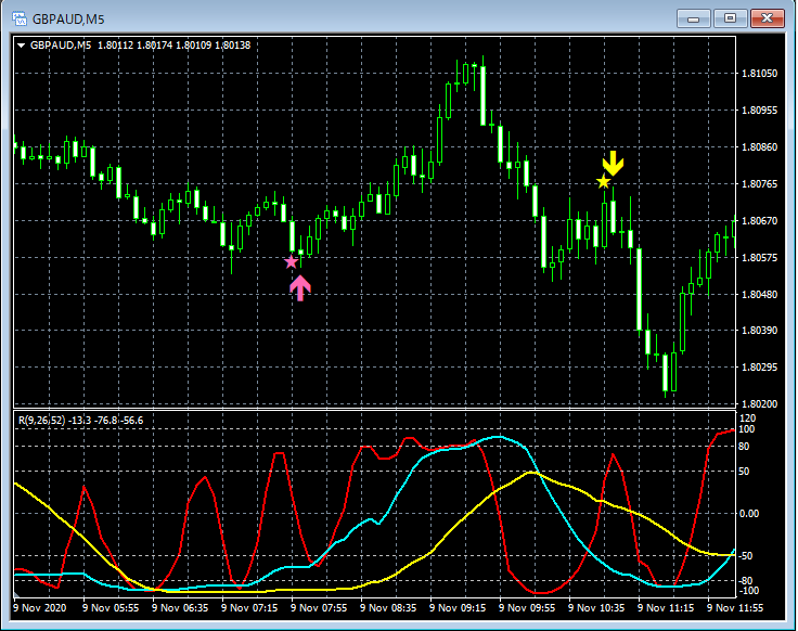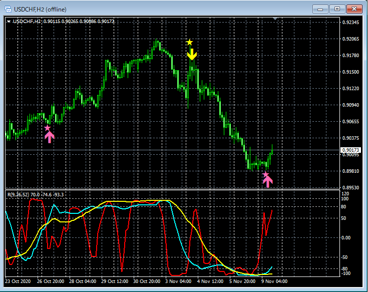 RCI3本ラインとの組み合わせで威力を発揮するインジケーター 11月9日~11月13日に見られたサインの例 (1)