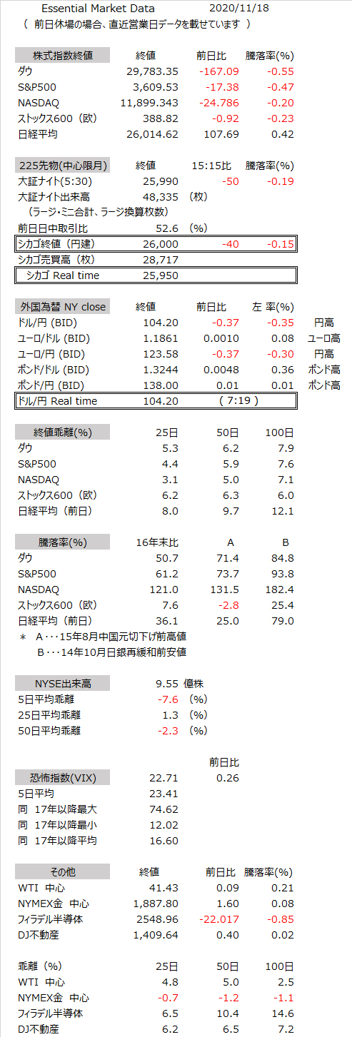 井上哲男氏 相場の潮流 2020年11月18日号から、今回は、マーケット解説に加えて、井上氏のテクニカル分析データもお届けいたします。