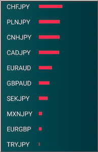 上から勢いが強い順番に通貨ペアをランキング形式で見やすく表示。