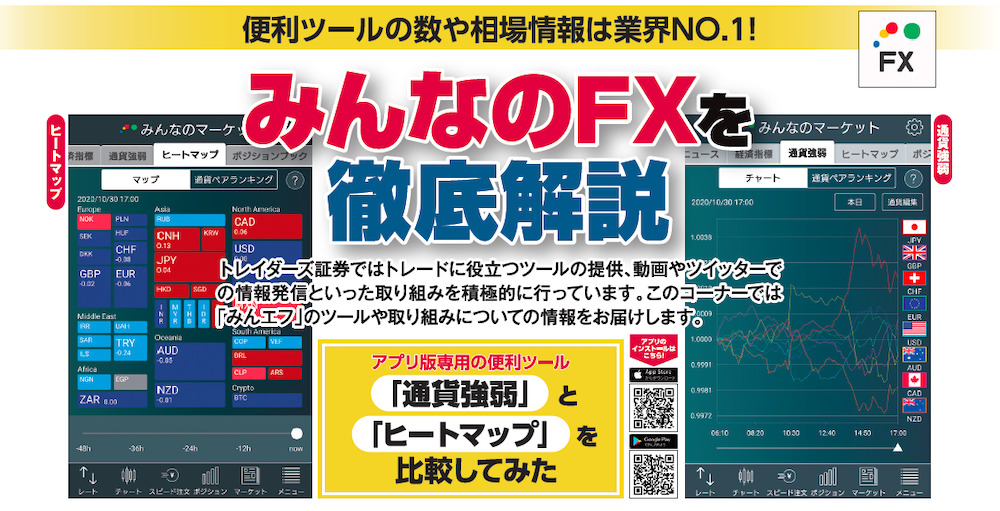 トレイダーズ証券ではトレードに役立つツールの提供、動画やツイッターでの情報発信といった取り組みを積極的に行っています。このコーナーでは「みんエフ」のツールや取り組みについての情報をお届けします。
