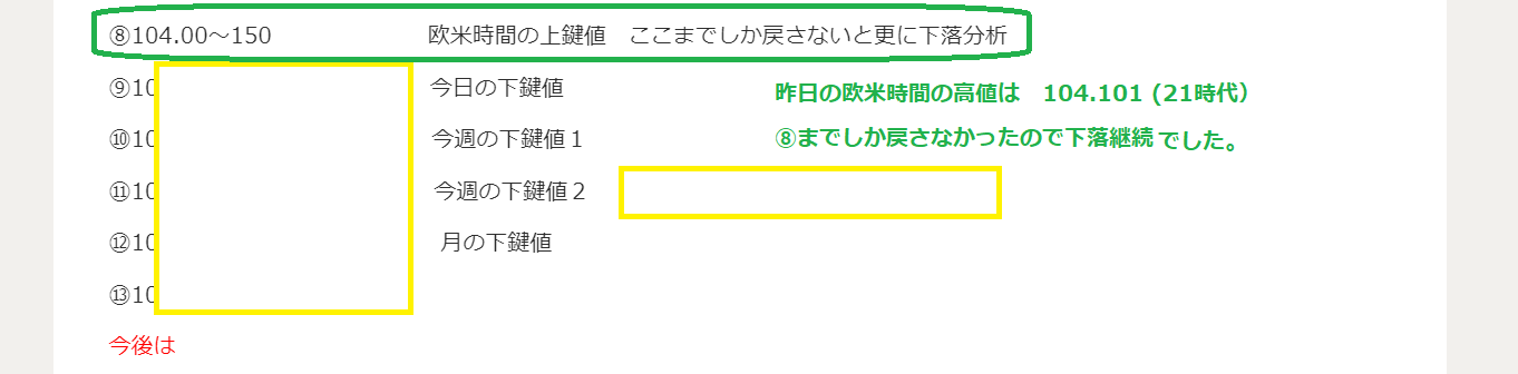 *下落中の中、欧米時間の上鍵値を上抜けなかったので更に下落しました。