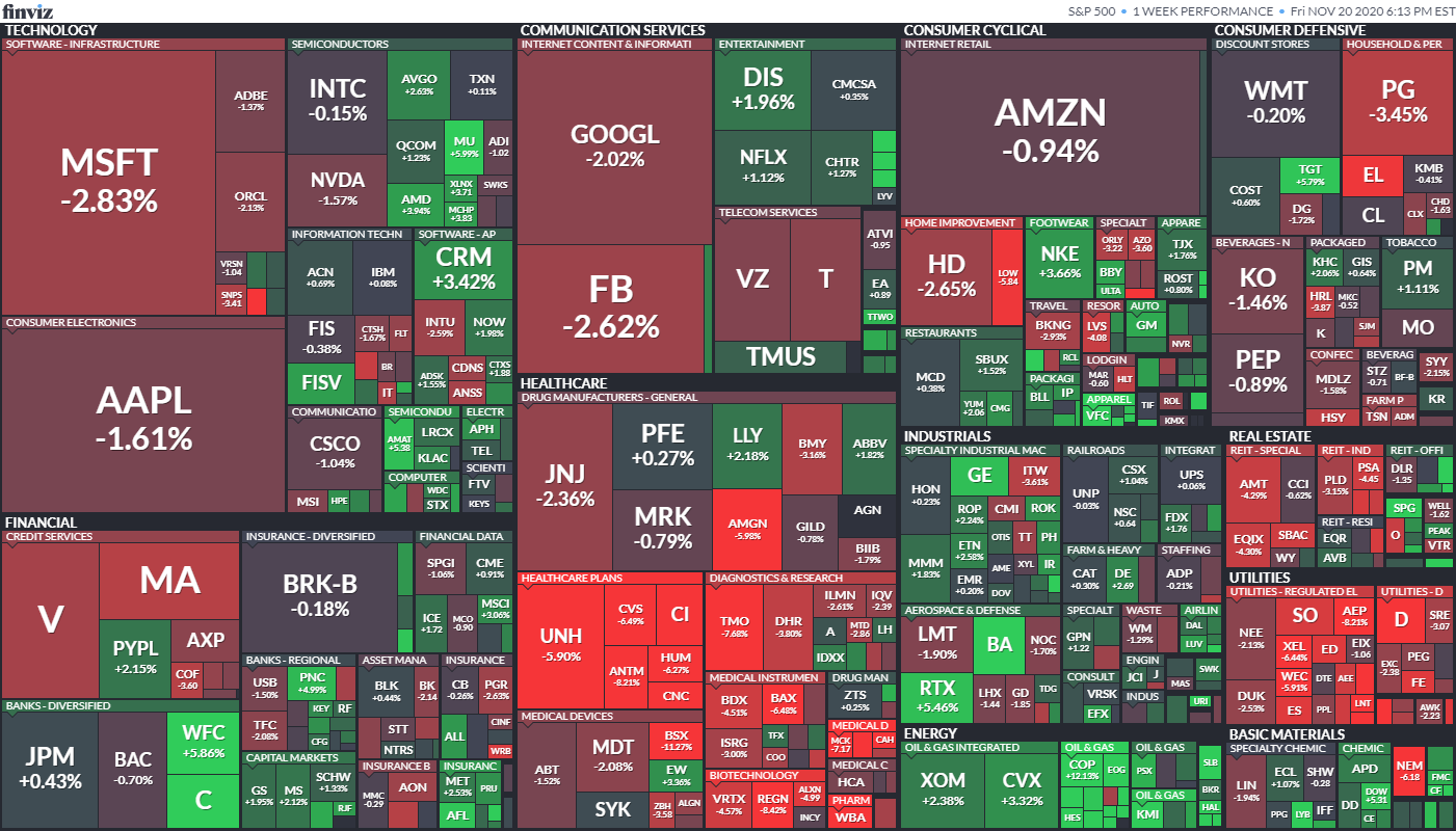 同3週目は、大統領選挙直前からの株価上昇による過熱感や米国内のコロナウイルス感染者の更なる増加などにより、やや下落しています。