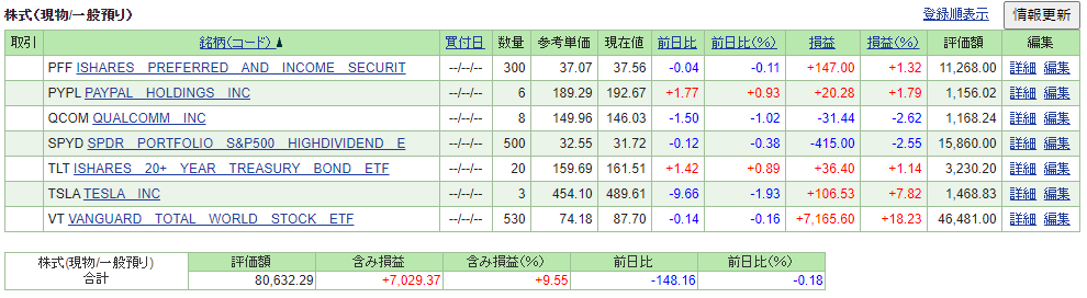100株ずつ、2回に分けて一部売却し、その資金でPFFを買い増しするなどポジション調整を行いました。