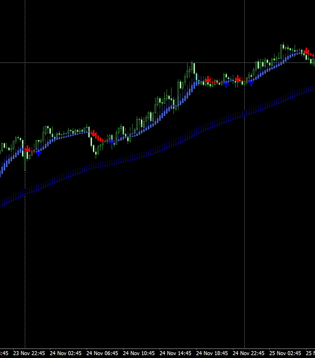 平均足の色とサイン矢印の色の合致が基本的なエントリーとなる。