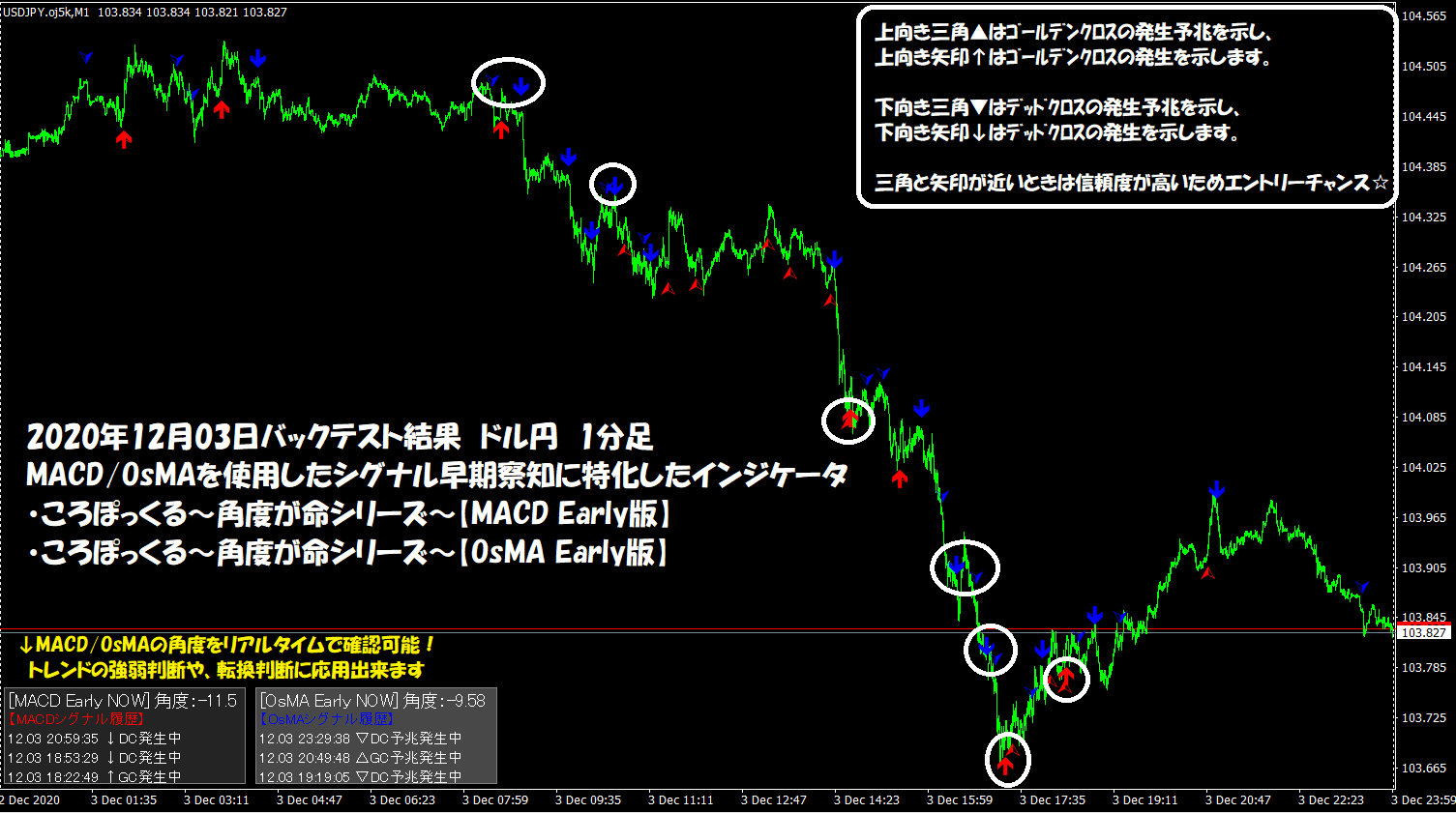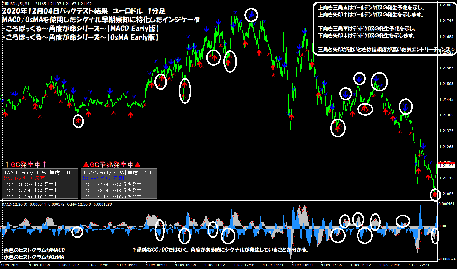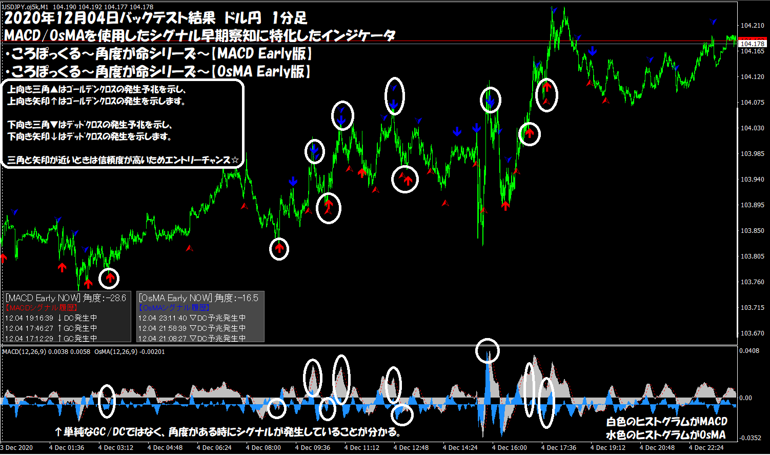 今回は先週(12月02日~12月04日)分の【ドル円】と【ユーロドル】について『ころぽっくる~角度が命シリーズ~』の【MACD Early版】と【OsMA Early】を組み合わせたバックテスト結果を振り返りしたいと思います。