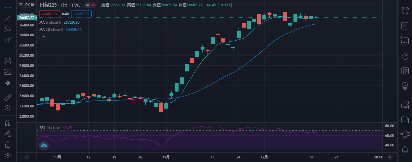 ■環境認識:日経平均株価日足(超上昇トレンドからレンジ気味へ)