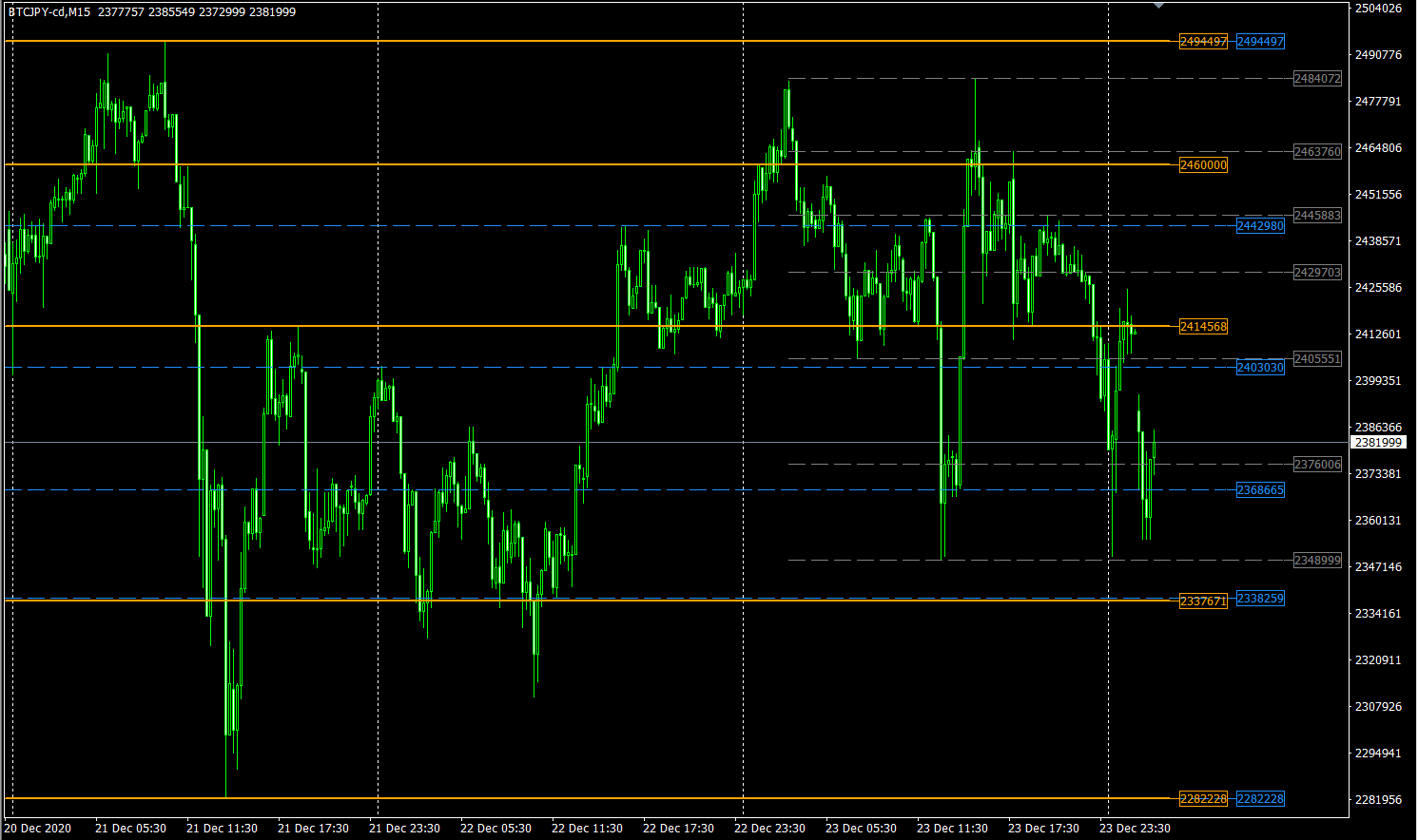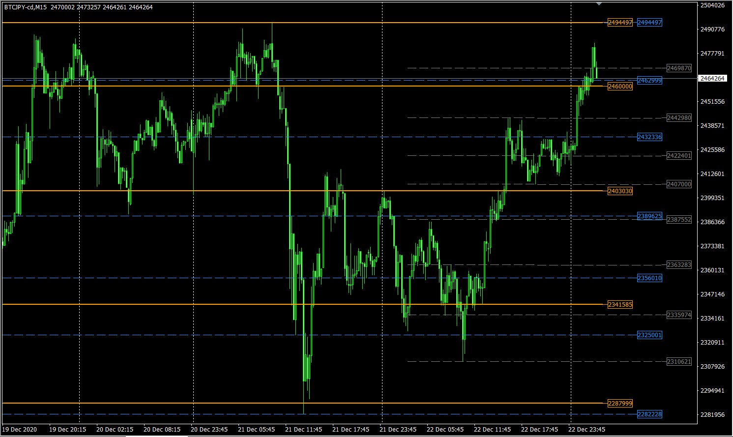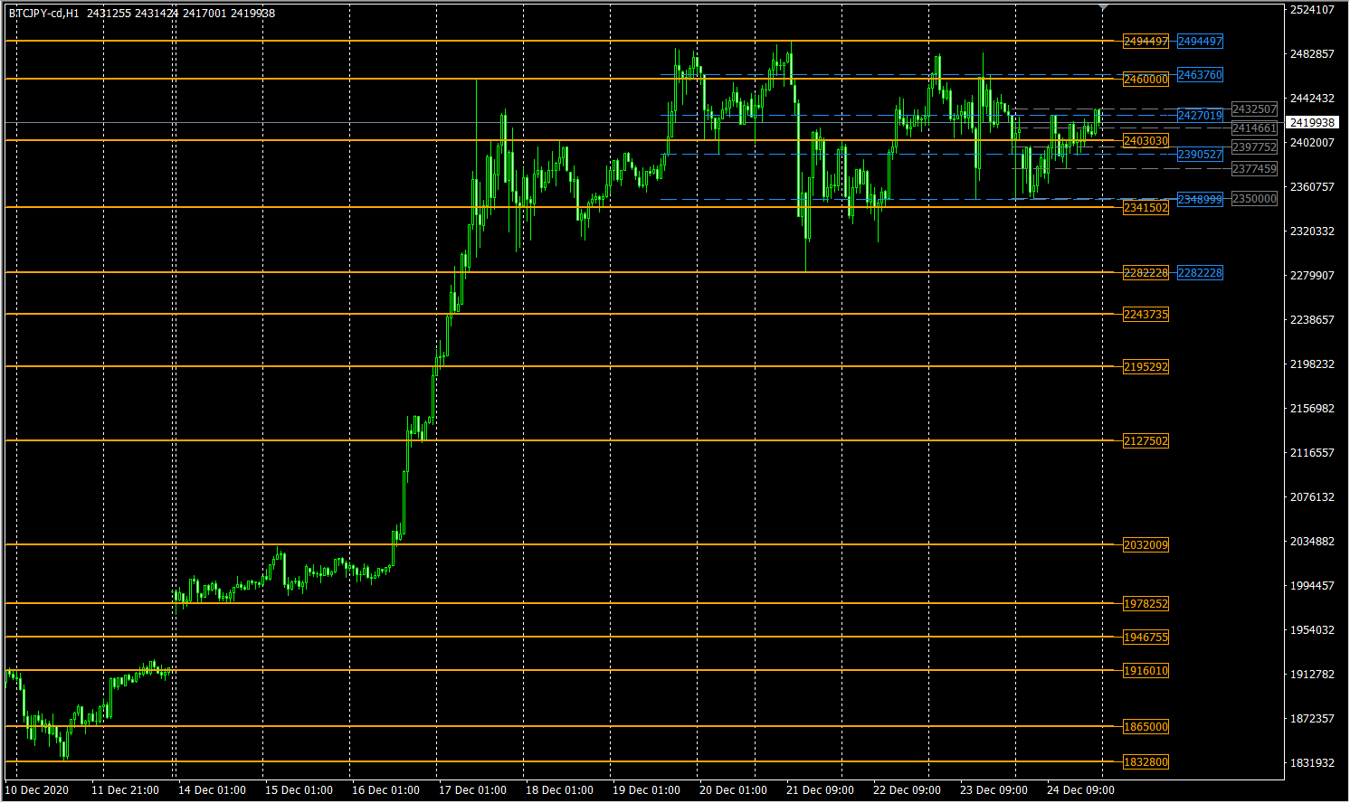 使用したインジケータは『ころぽっくる~水平ラインを自動表示~』です。