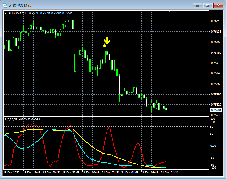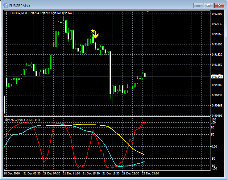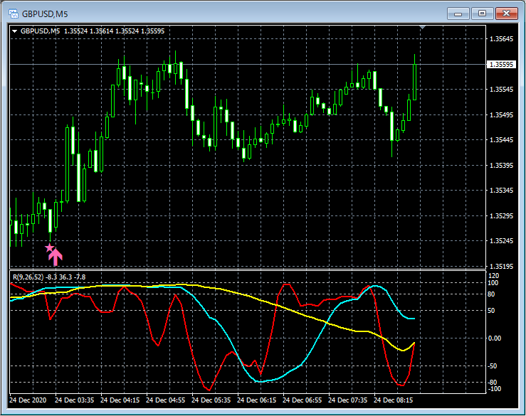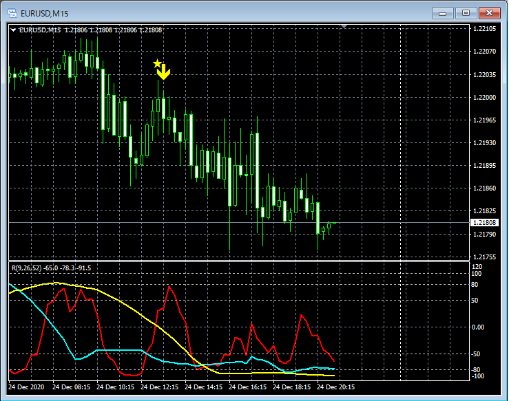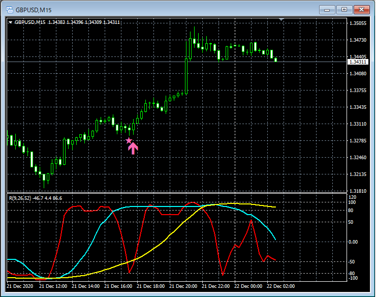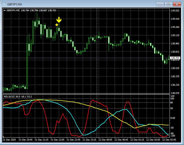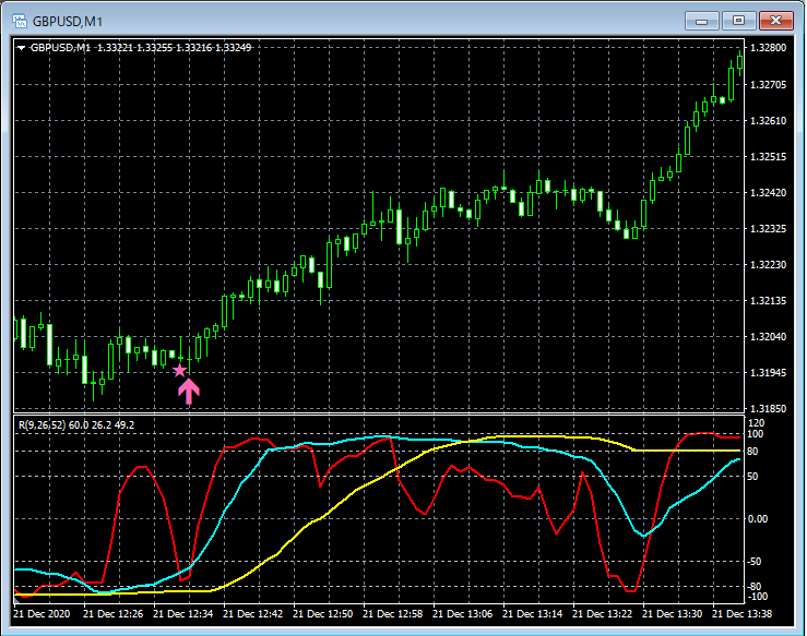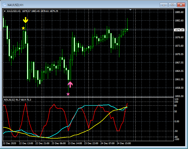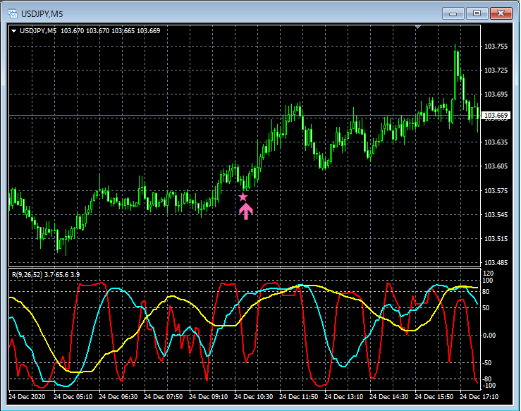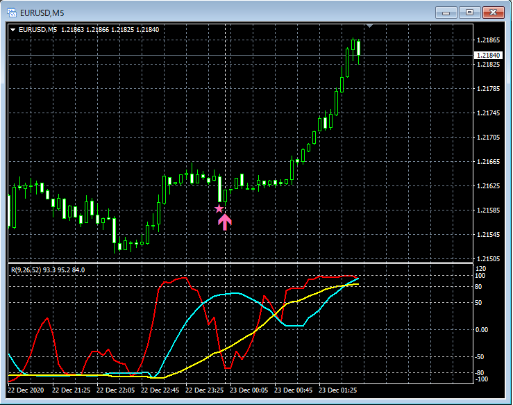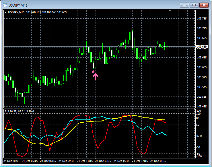 RCI3本ラインとの組み合わせで威力を発揮するインジケーター 12月21日~12月25日に見られたサインの例