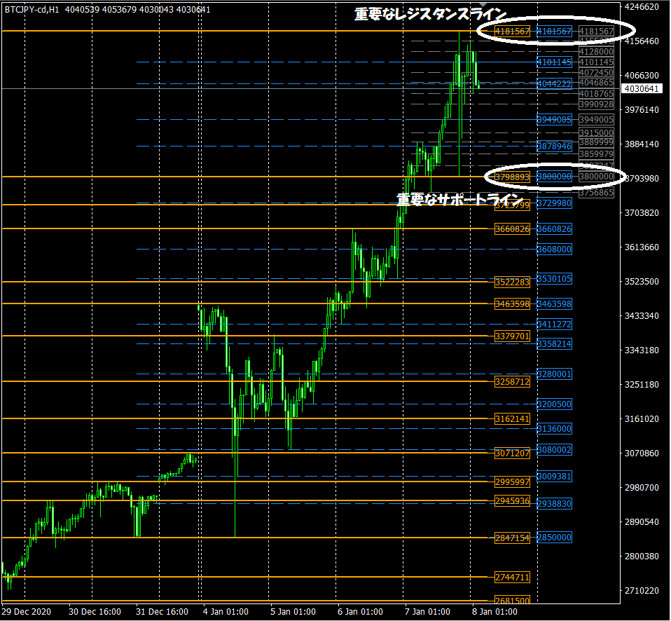 インジケータ★ころぽっくる~水平ラインを自動表示~【ビットコイン円】リアルタイムチャート公開