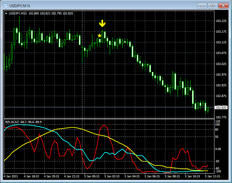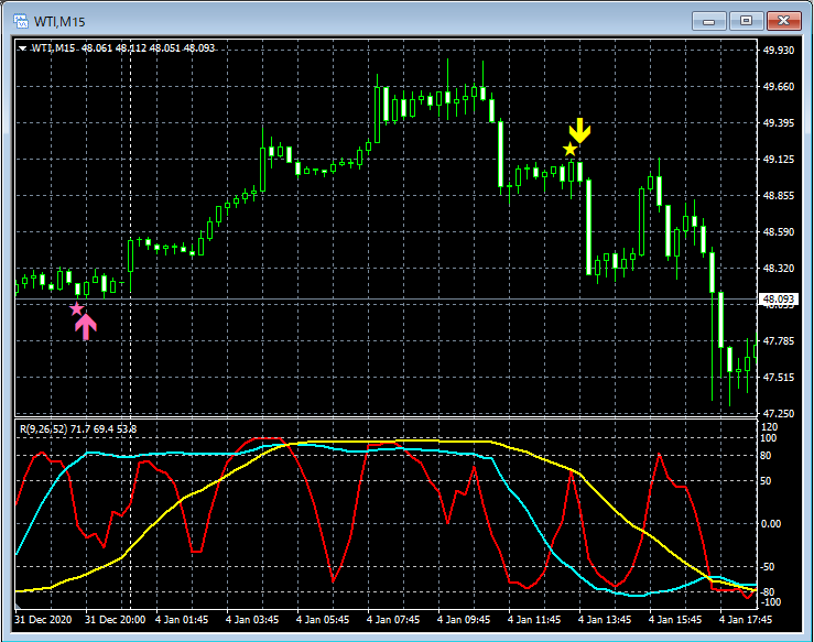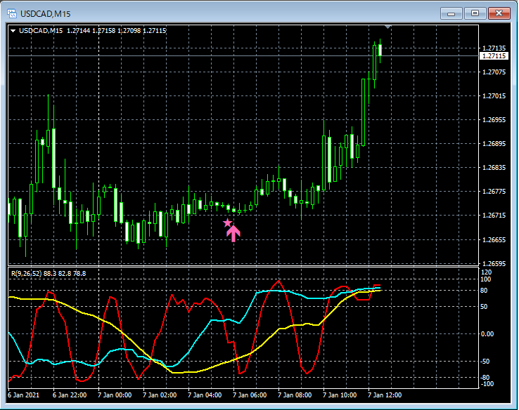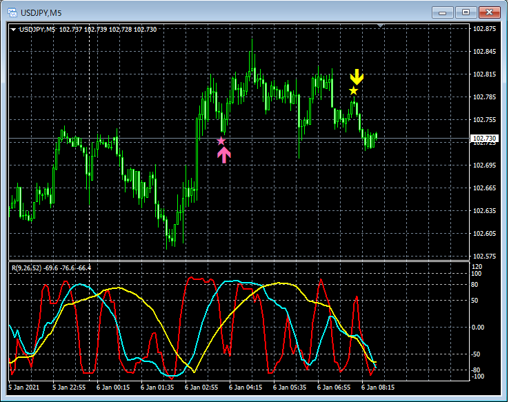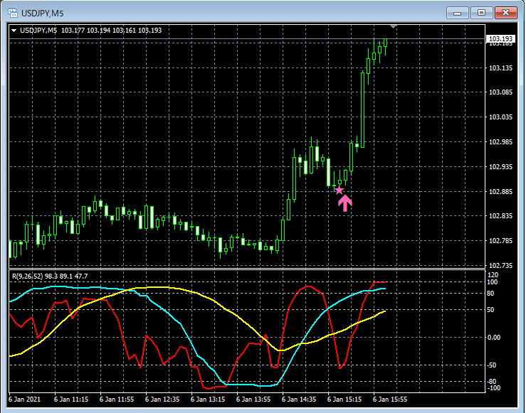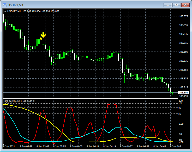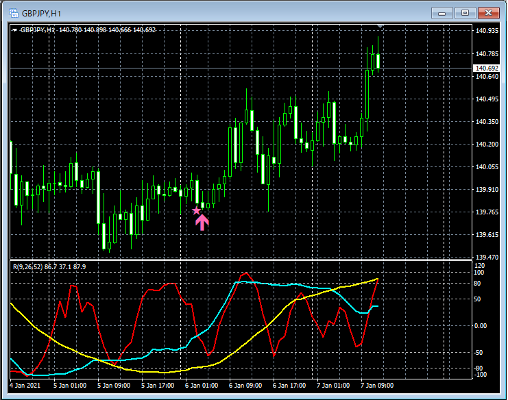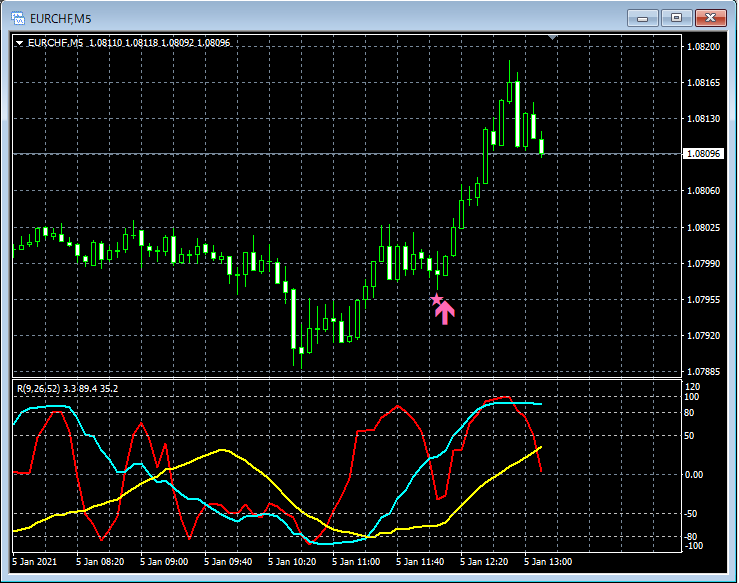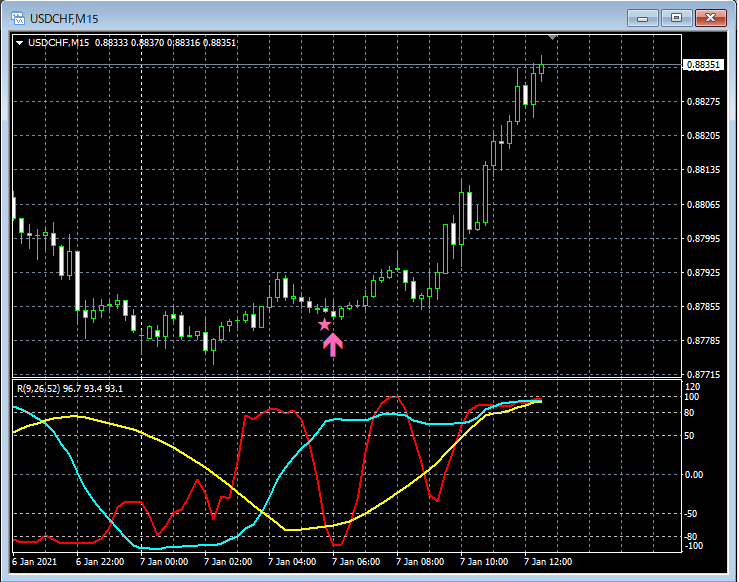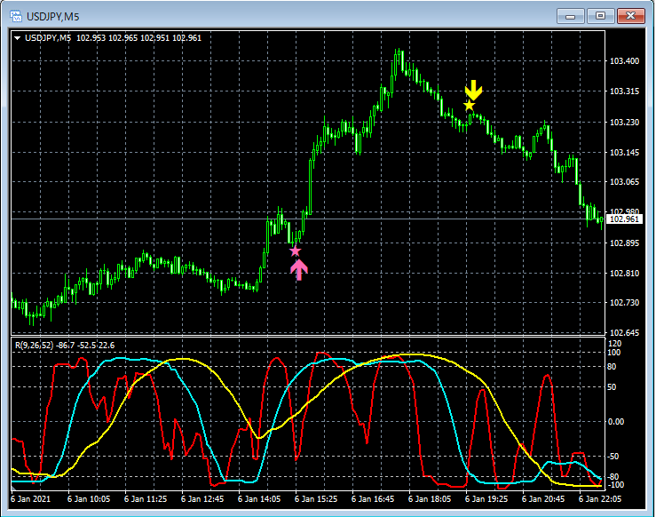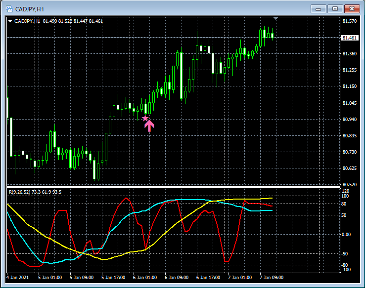 RCI3本ラインとの組み合わせで威力を発揮するインジケーター 1月4日~1月8日に見られたサインの例