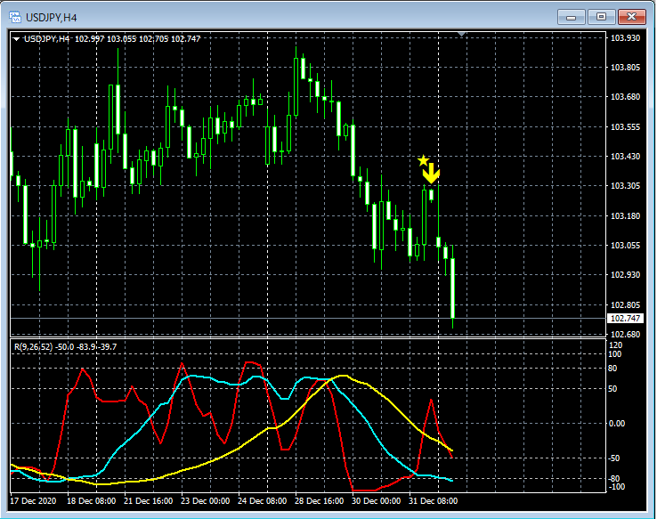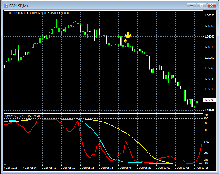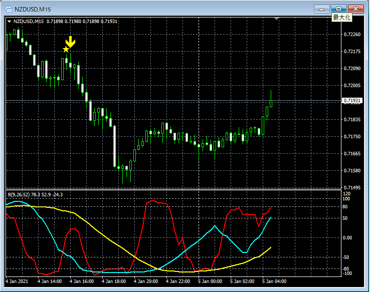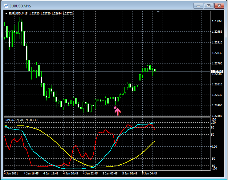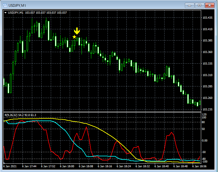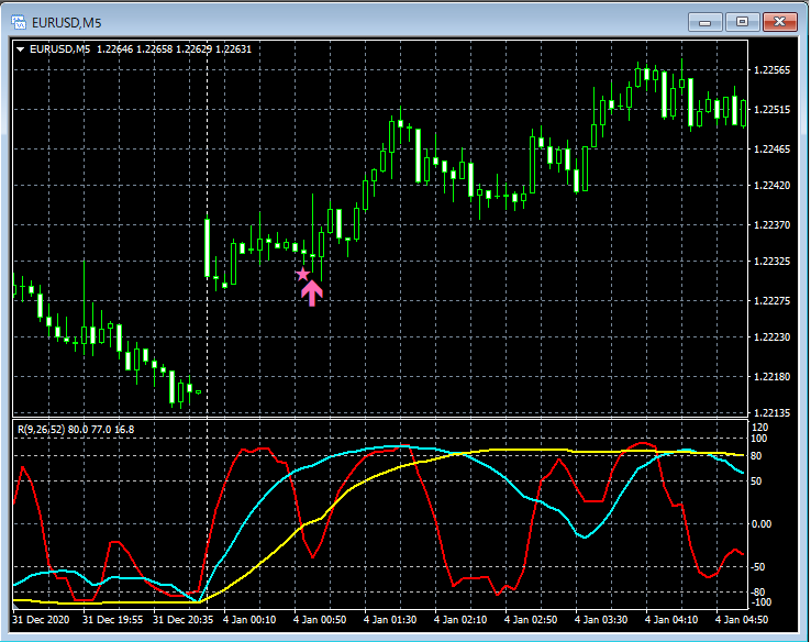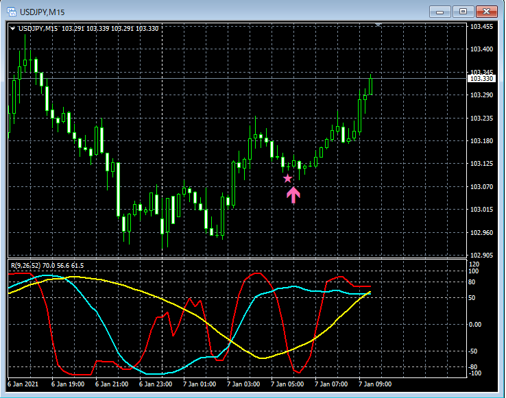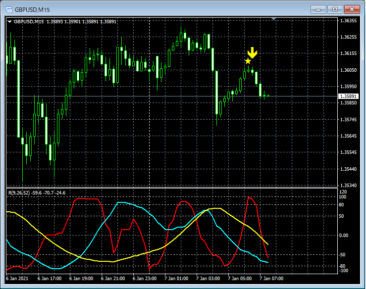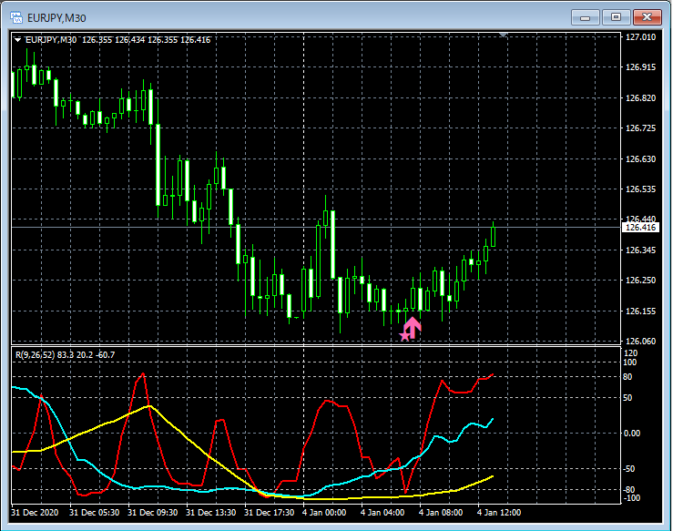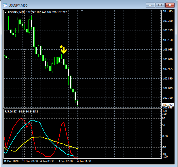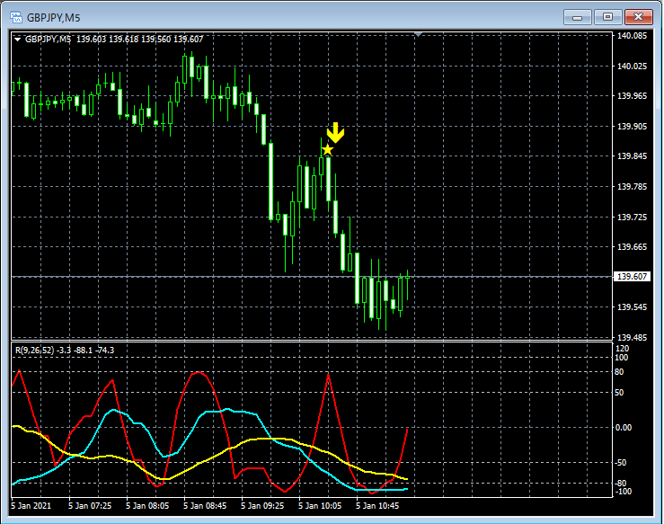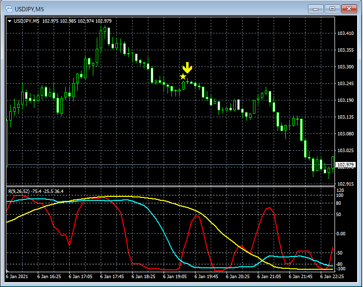 RCI3本ラインとの組み合わせで威力を発揮するインジケーター 1月4日~1月8日に見られたサインの例