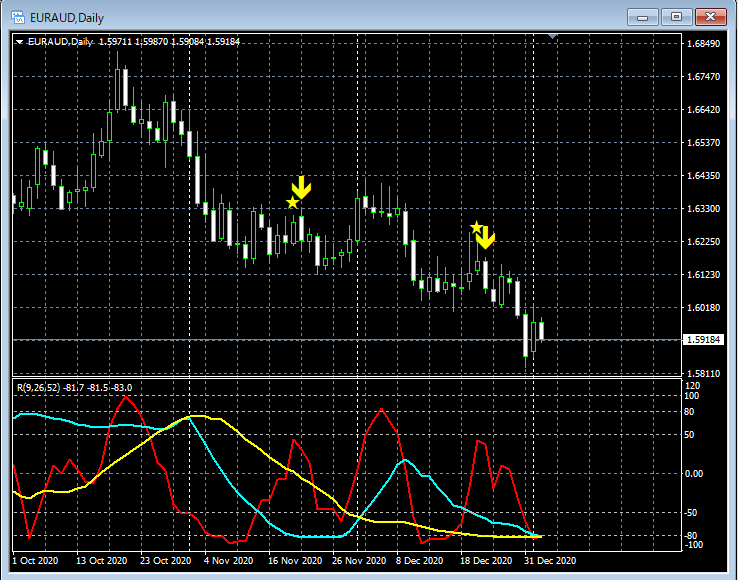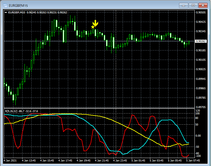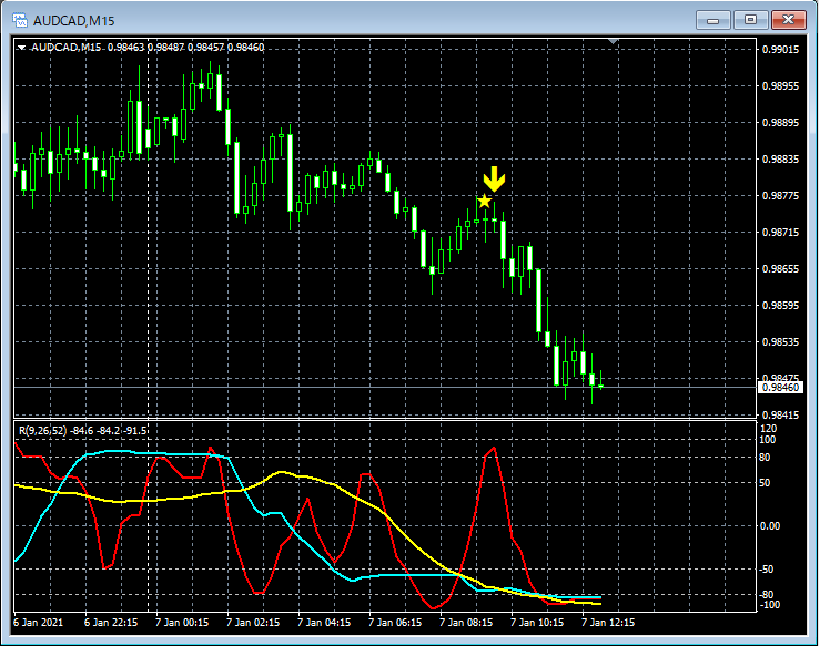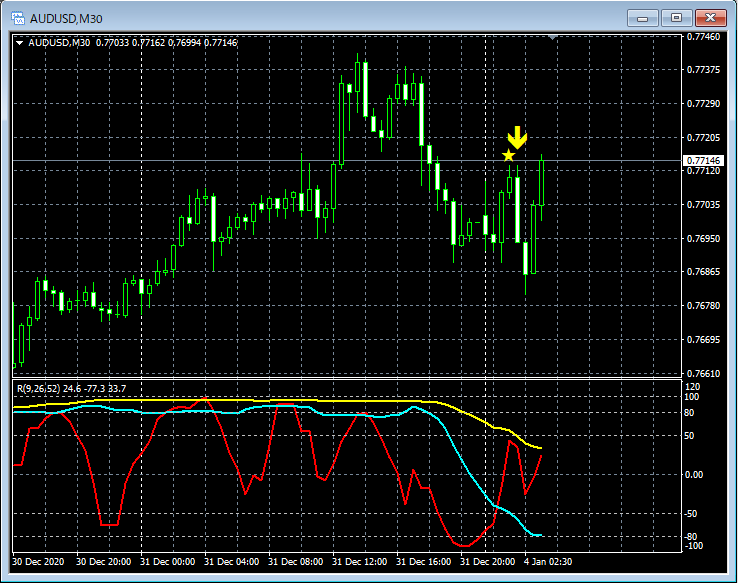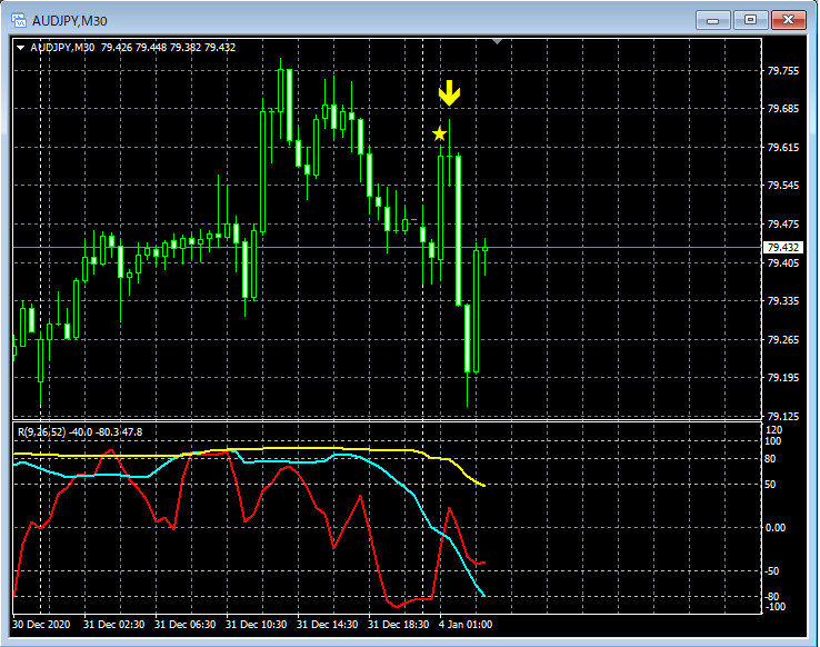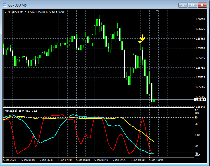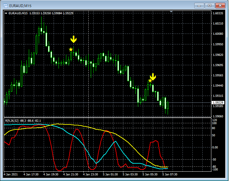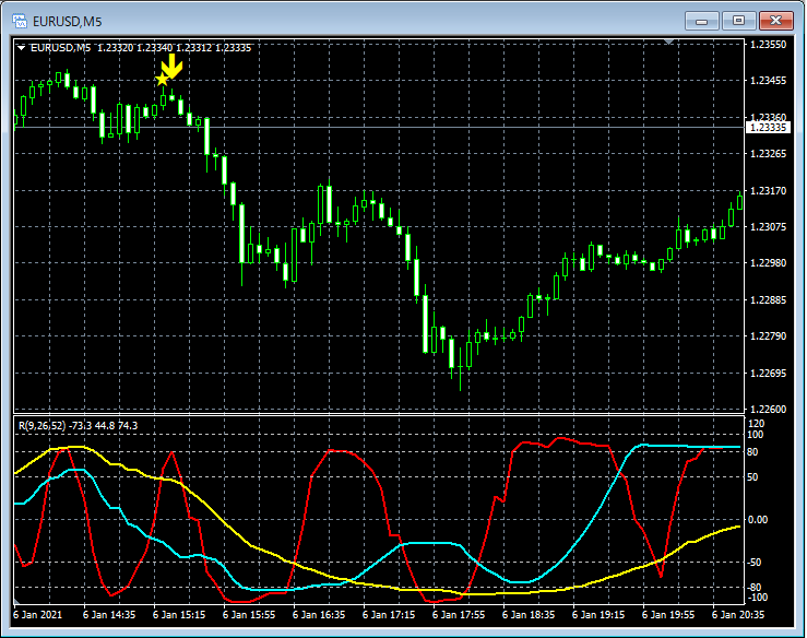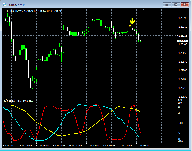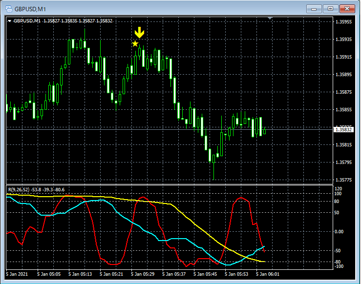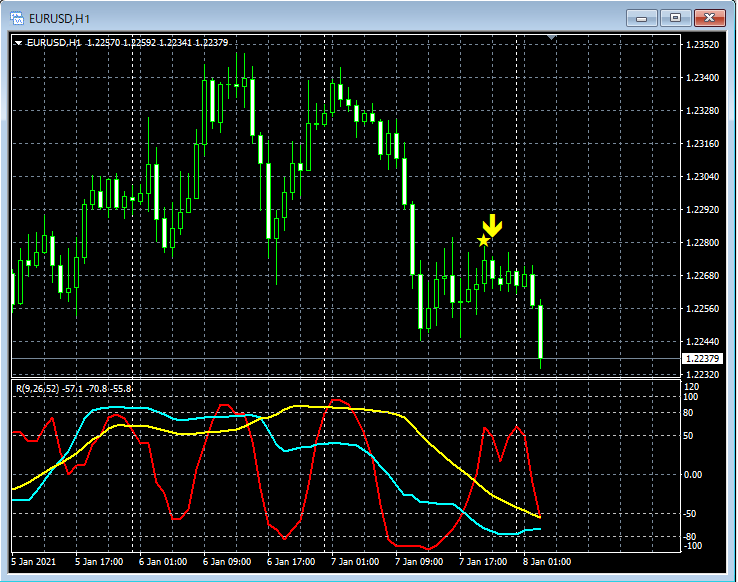 RCI3本ラインとの組み合わせで威力を発揮するインジケーター 1月4日~1月8日に見られたサインの例