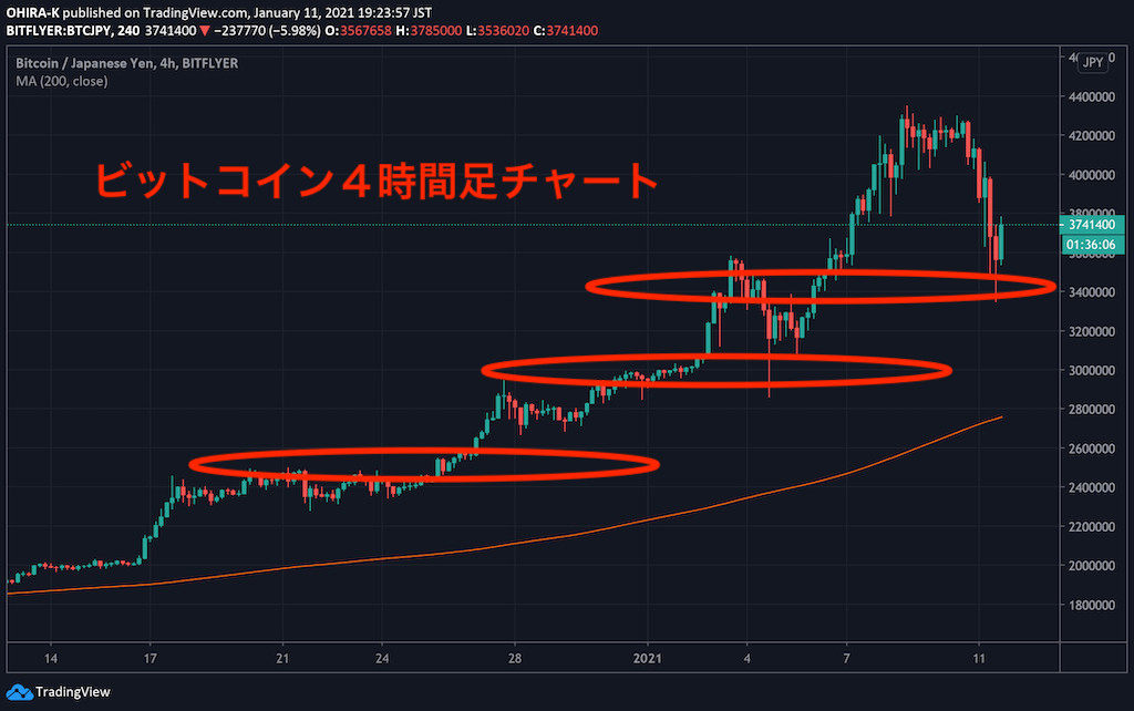 ビットコイン4時足チャート