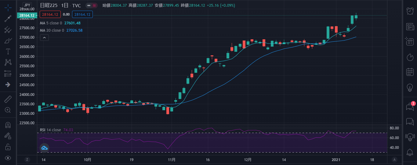 1月12日、日経平均株価は28164円で+25円高で取引を終えました。早速環境認識をしていきます。