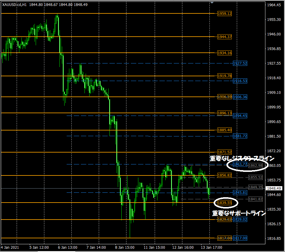 インジケータ★ころぽっくる~水平ラインを自動表示~【ゴールド米ドル】リアルタイムチャート公開