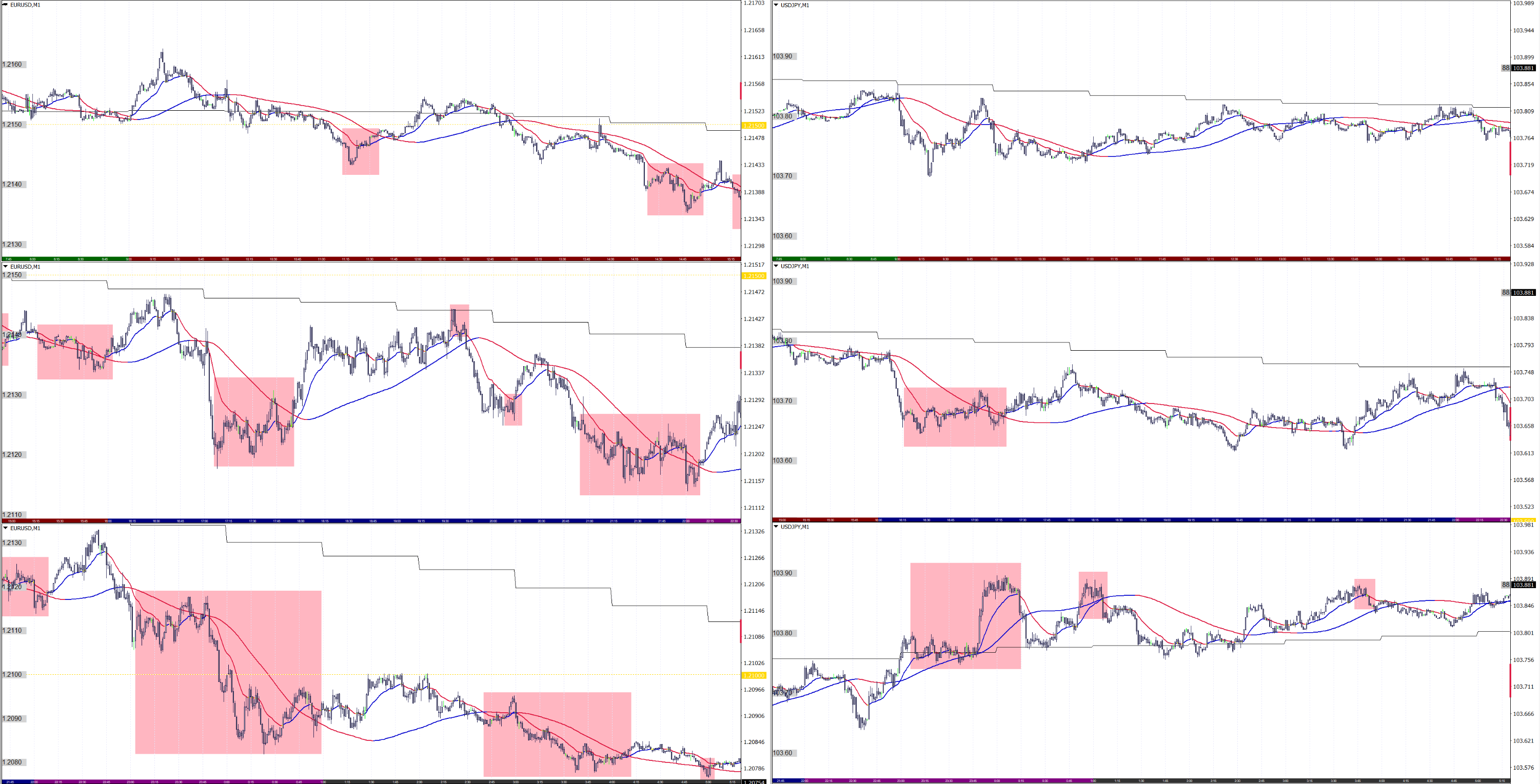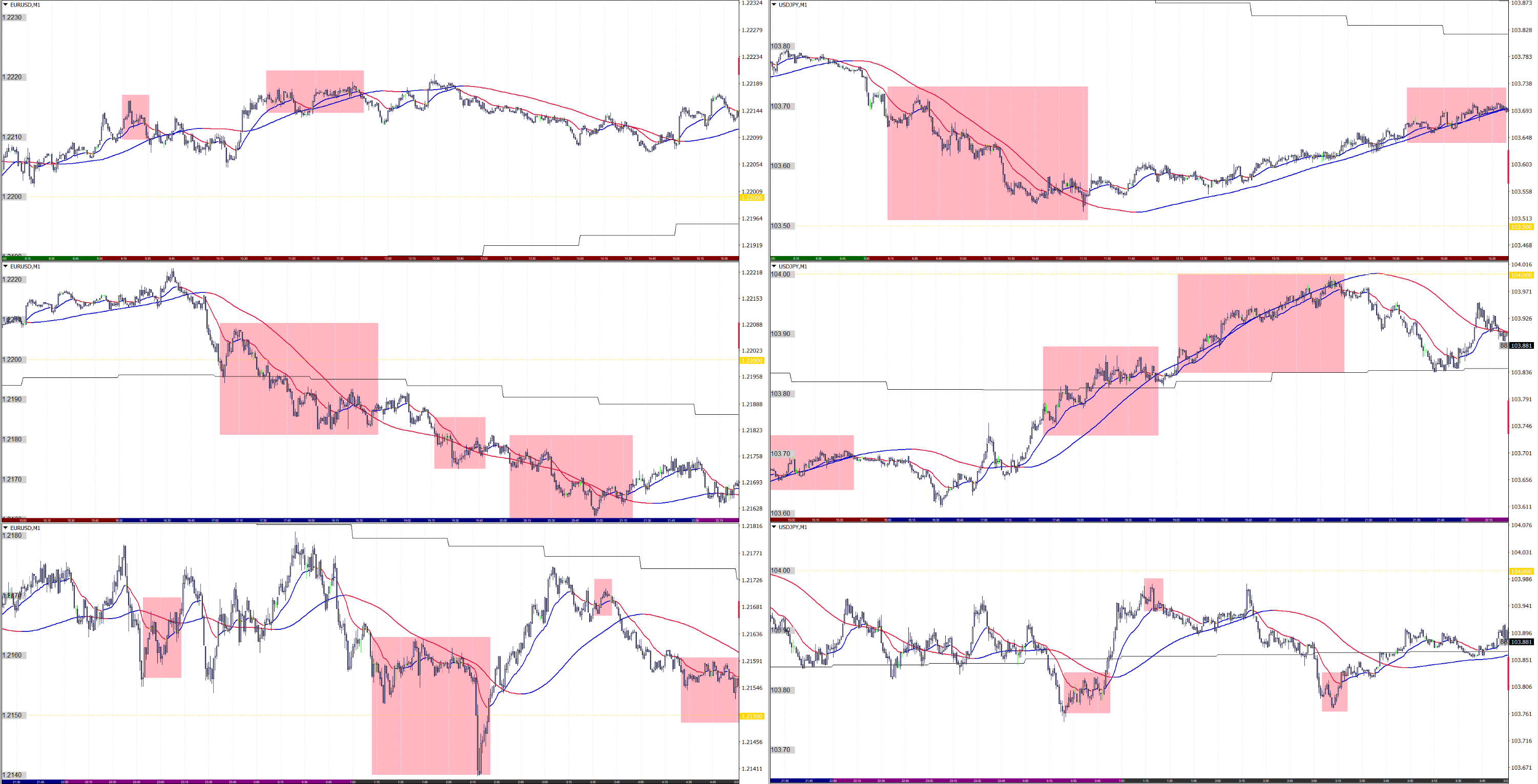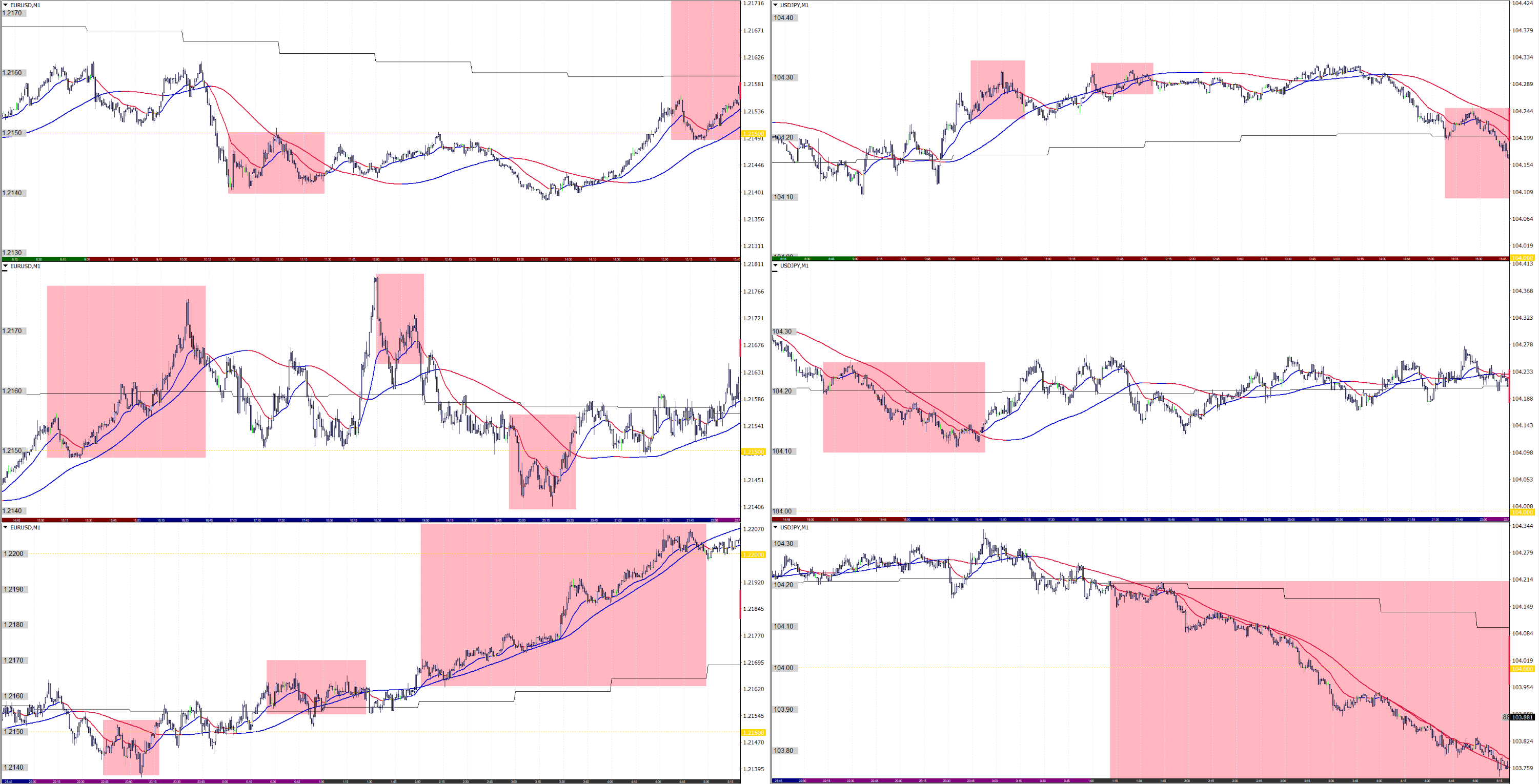 ■EHMtradeのロジックに従ったエントリーゾーン(カラー四角)を提示