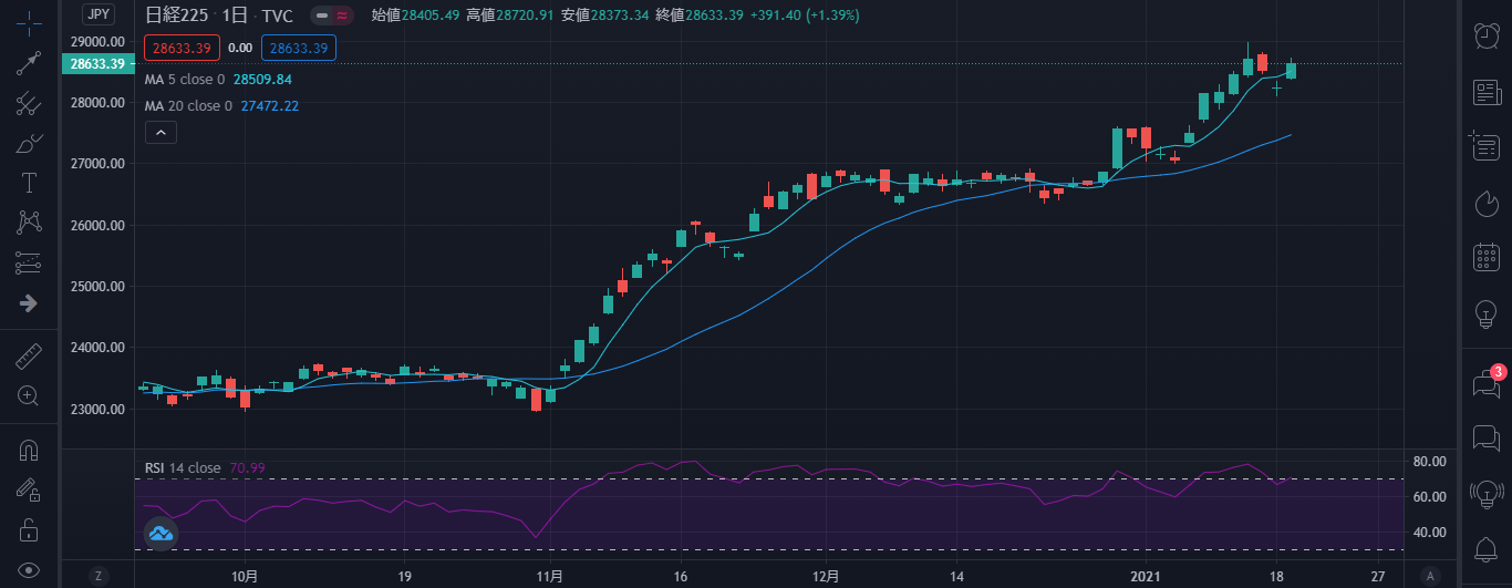 1月19日、日経平均株価は28633円で+391円高で取引を終えました。早速環境認識をしていきます。