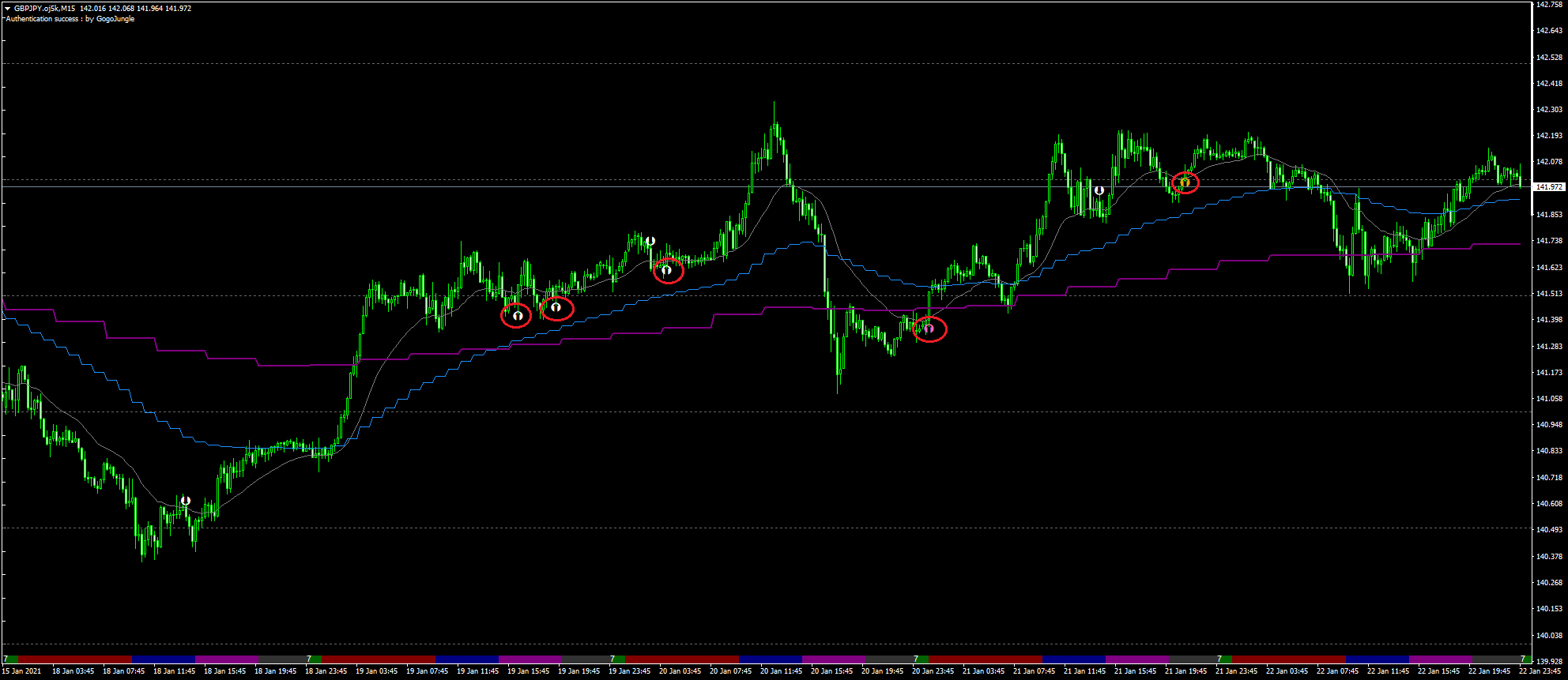 ボラティリティが全体的に低く、どの通貨ペアも比較的ダマシが多いシグナルになってしまった印象です。半分くらいは有効なシグナルでした。