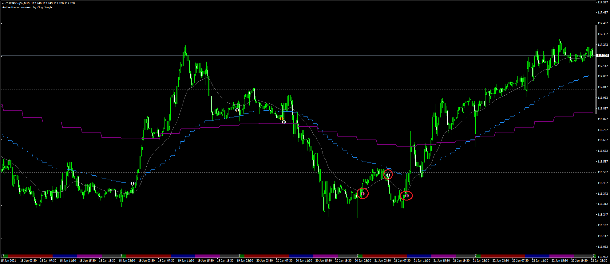 ボラティリティが全体的に低く、どの通貨ペアも比較的ダマシが多いシグナルになってしまった印象です。半分くらいは有効なシグナルでした。
