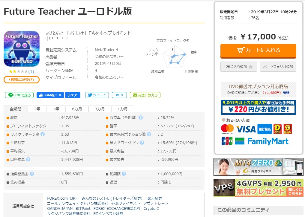 界隈から「未来先生」の愛称で親しまれたFuture Teacher ユーロドル版が上昇基調です。