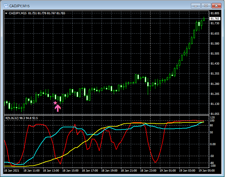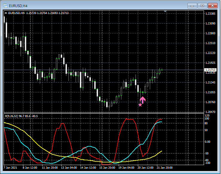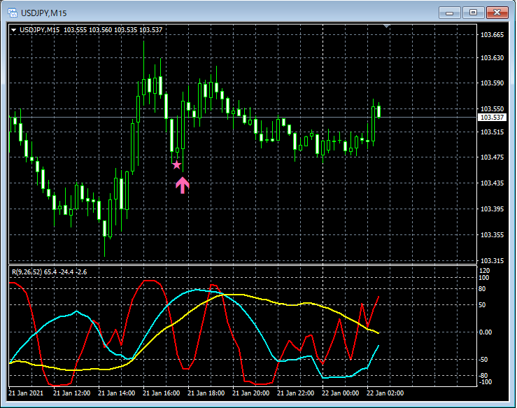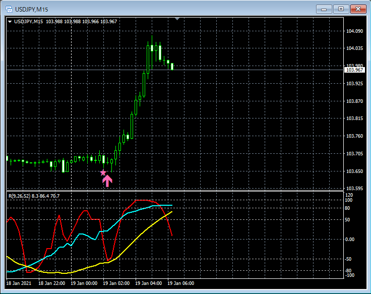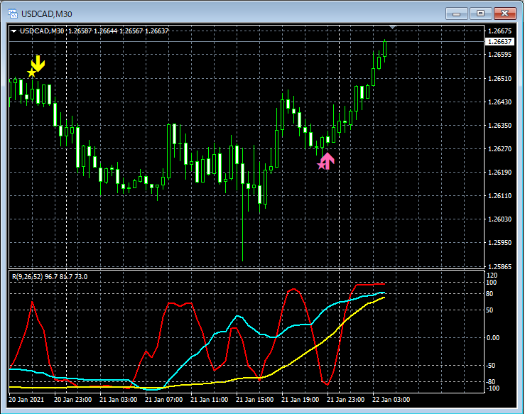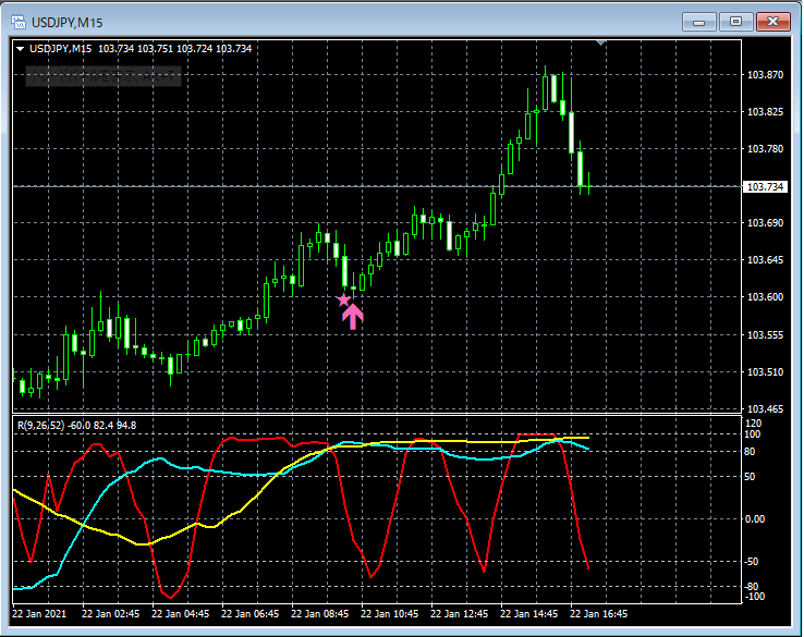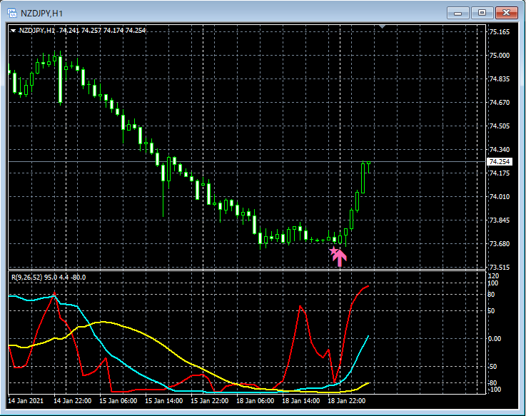 RCI3本ラインとの組み合わせで威力を発揮するインジケーター 1月18日~1月22日に見られたサインの例