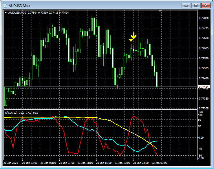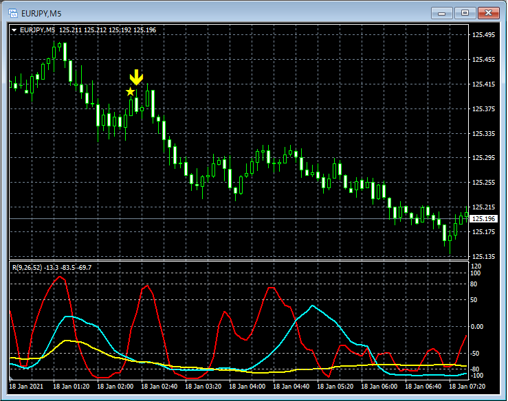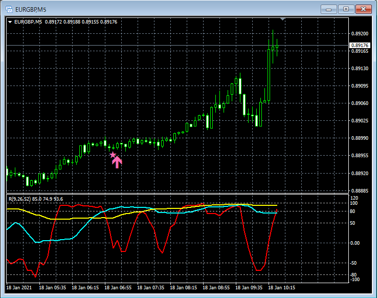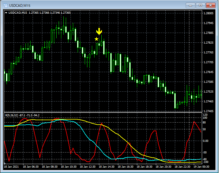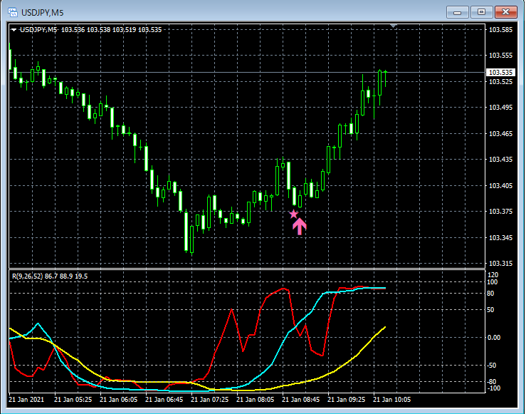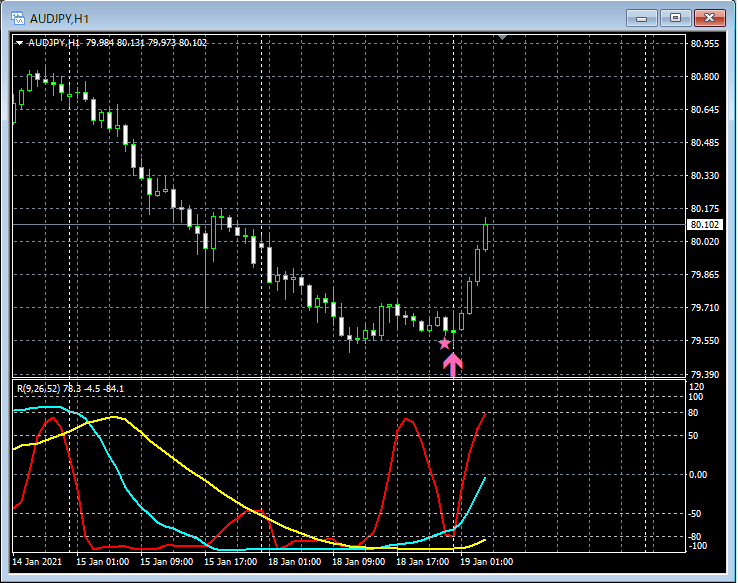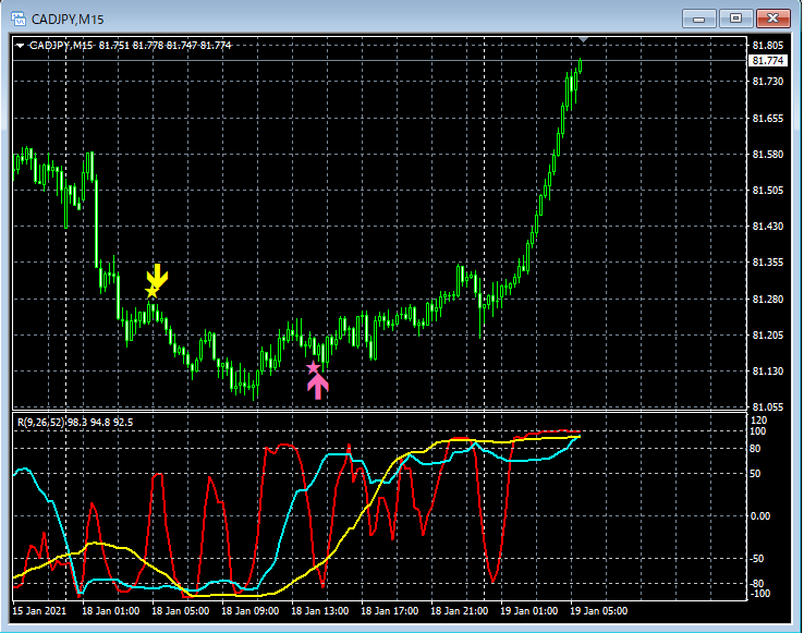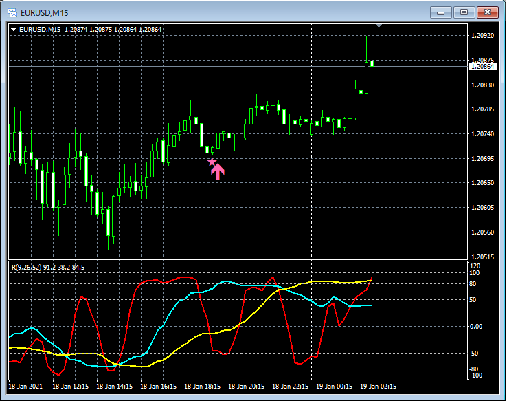 RCI3本ラインとの組み合わせで威力を発揮するインジケーター 1月18日~1月22日に見られたサインの例