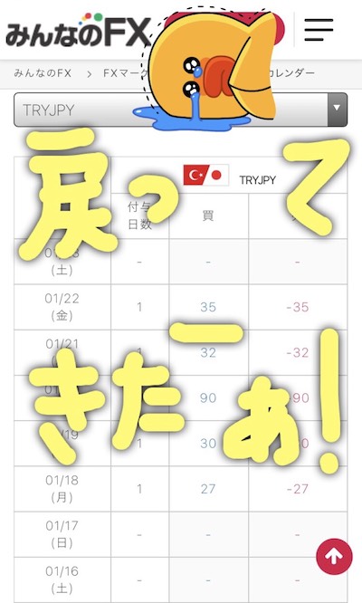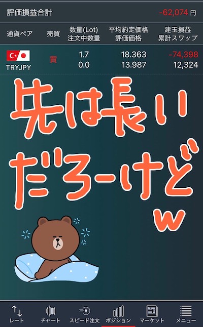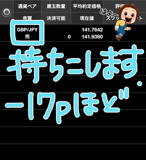 自分のポジションの含み損が、スワップよりだいぶ大きいですが、プラス転換目指して地道に頑張ります。