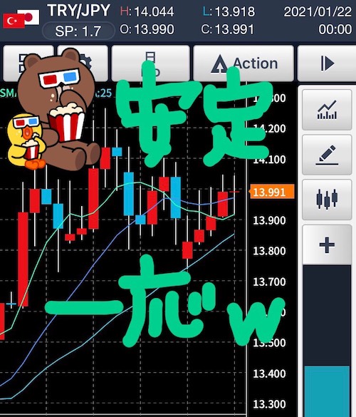まず、1月13日の売りを1月18日にようやく利確。週をまたいで時間はかかったけど、お見事♪