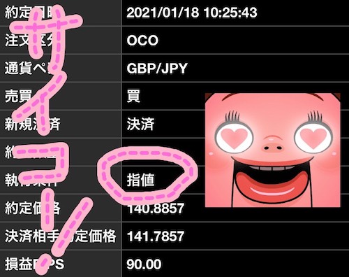 2021年トータルで3勝1敗の+210pipsです。好調!