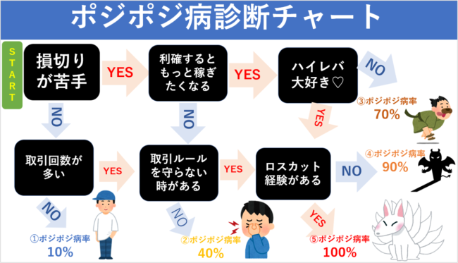 上記に書かれている方程式を理解した上で「ポジションを保持する=損失する」という方程式も把握している人はポジポジ病にかかりません。