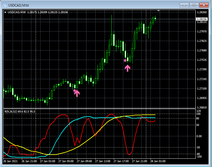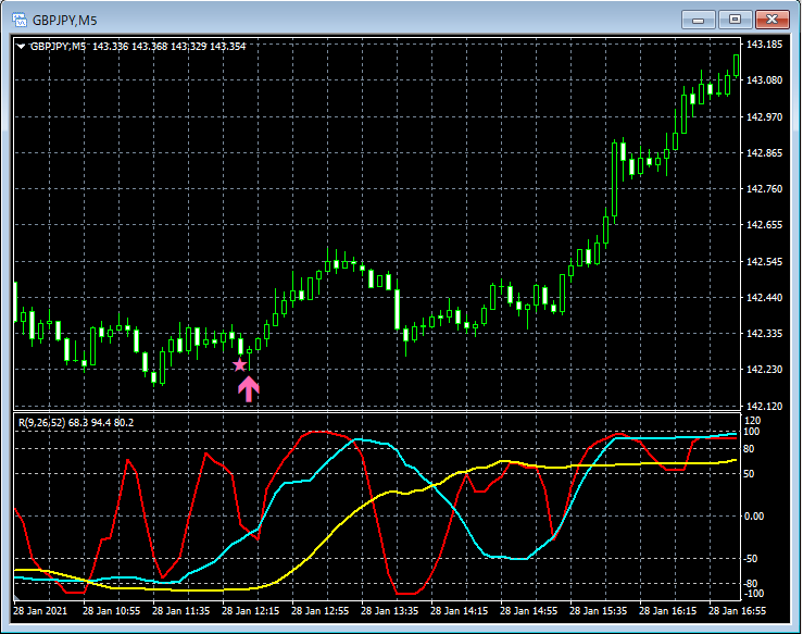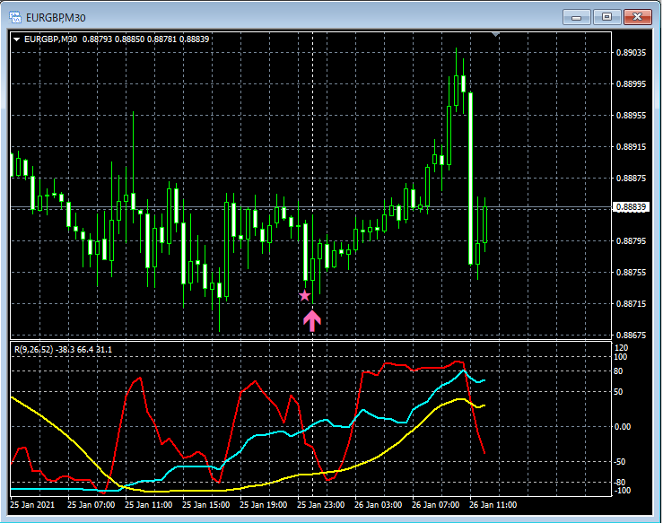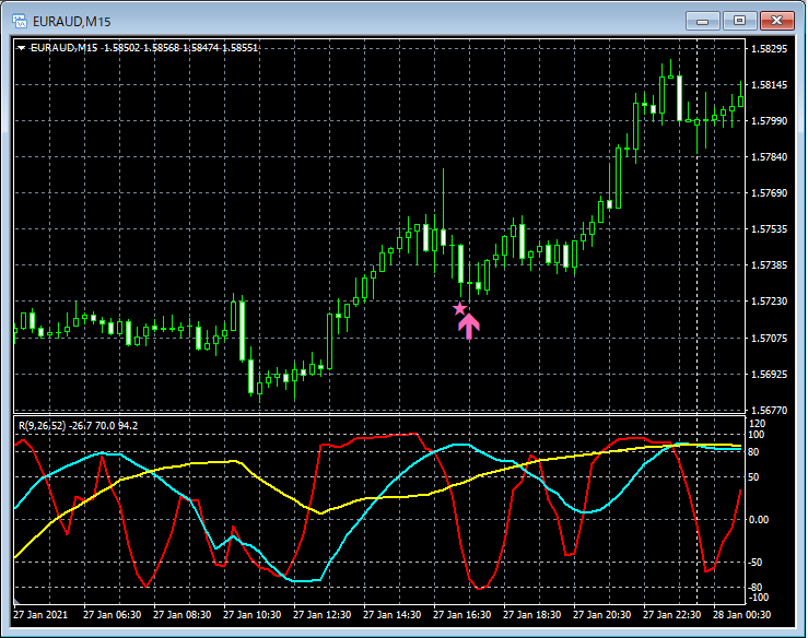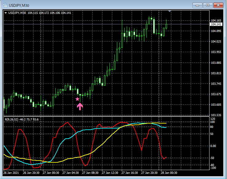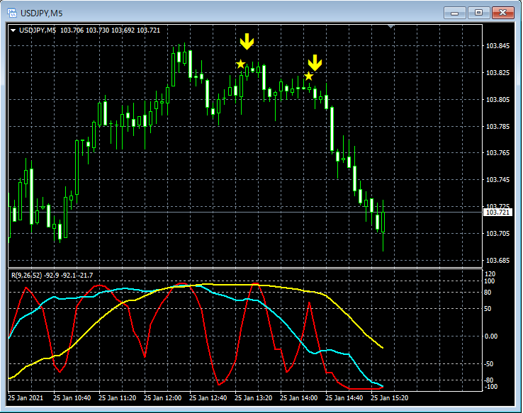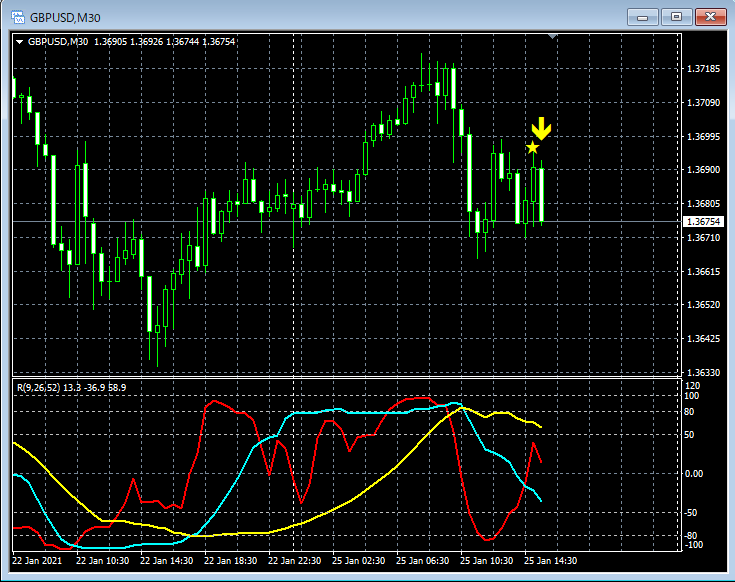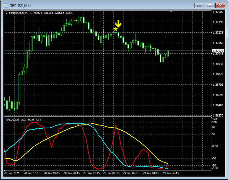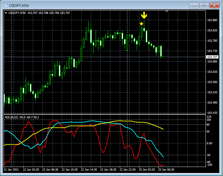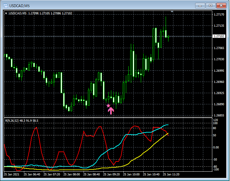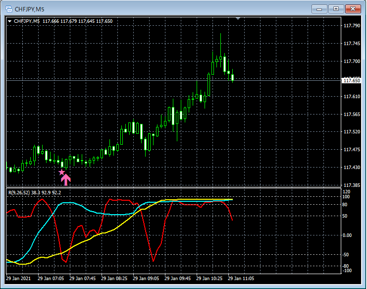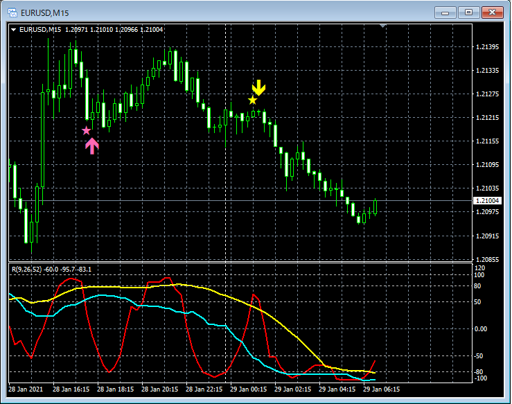 RCI3本ラインとの組み合わせで威力を発揮するインジケーター 1月25日~1月29日に見られたサインの例