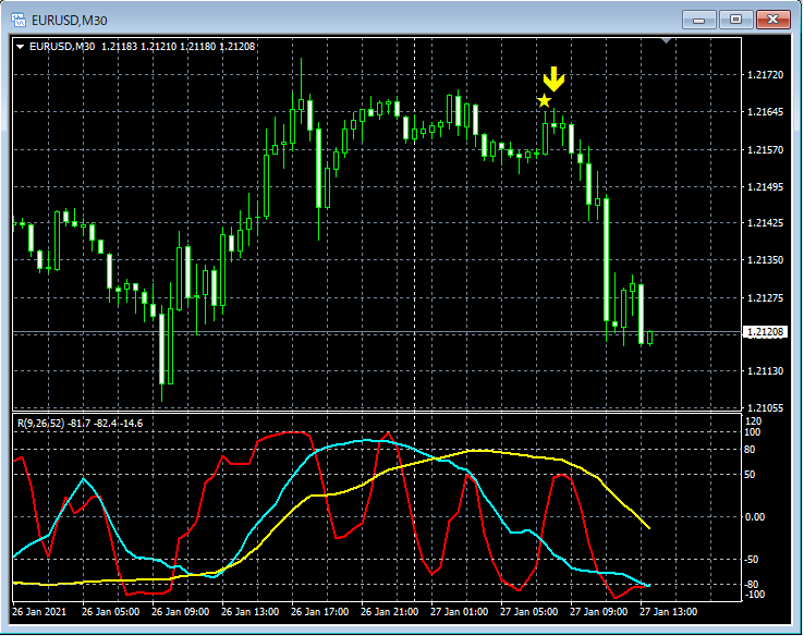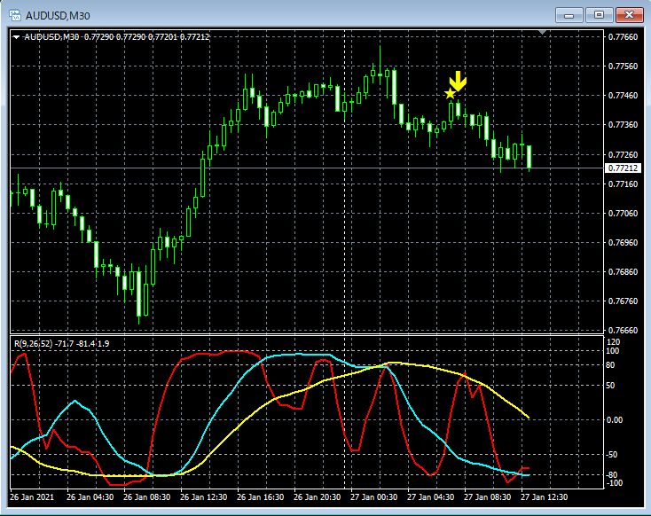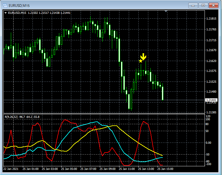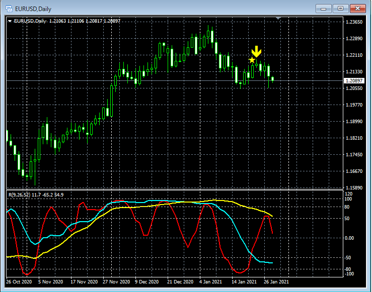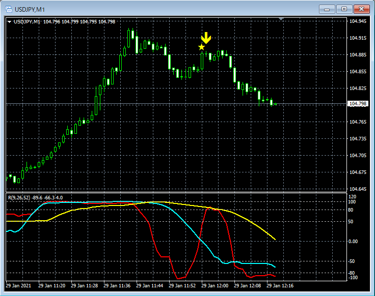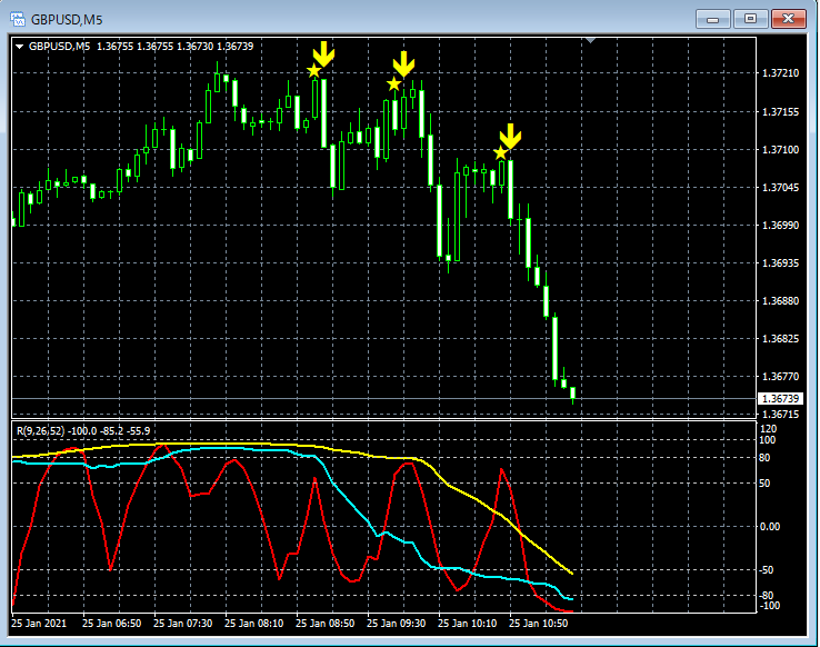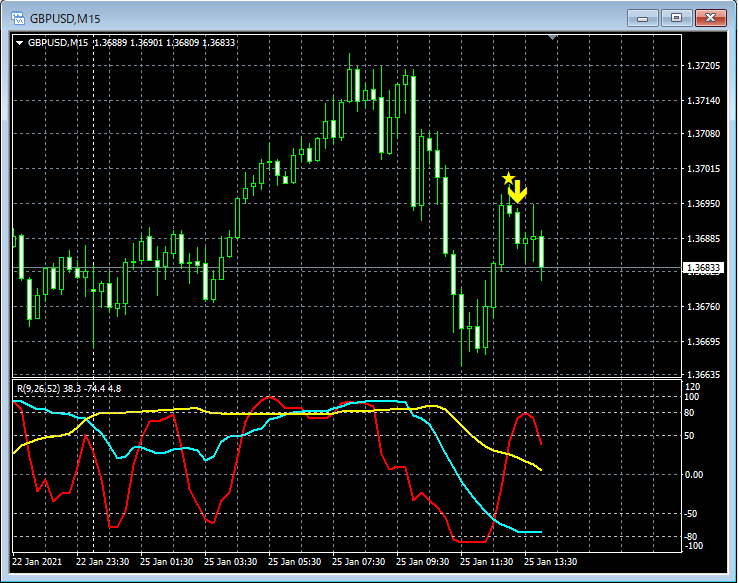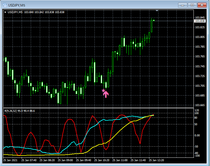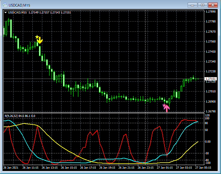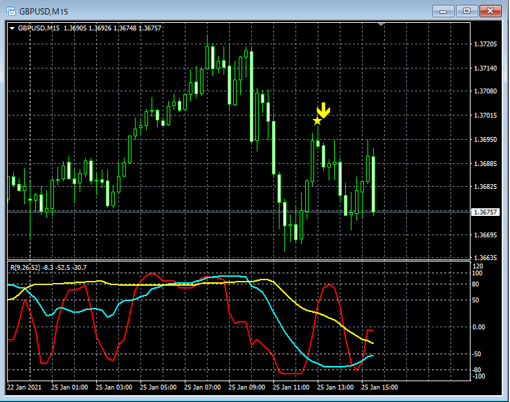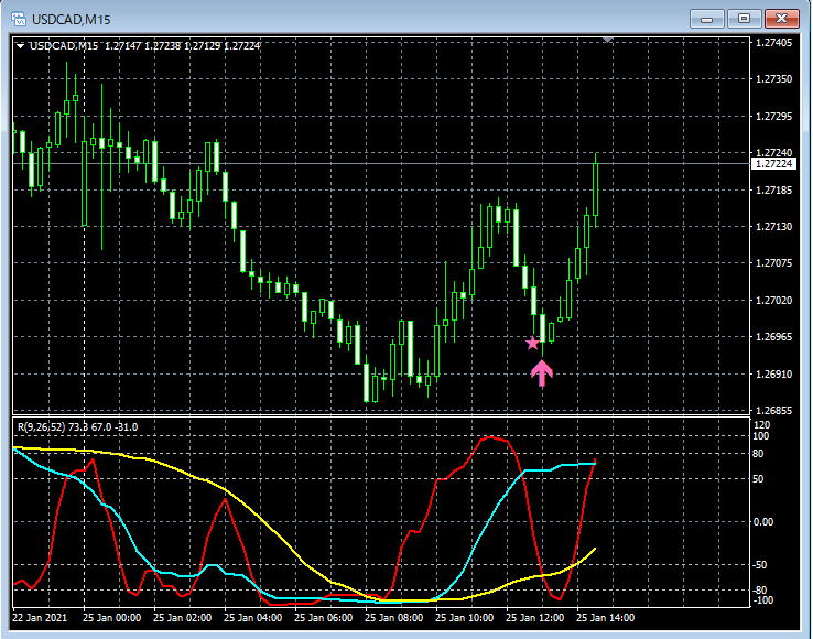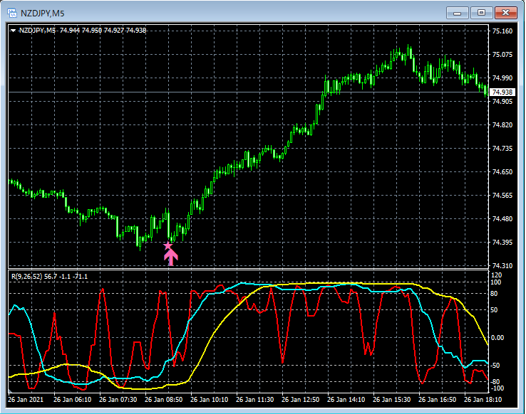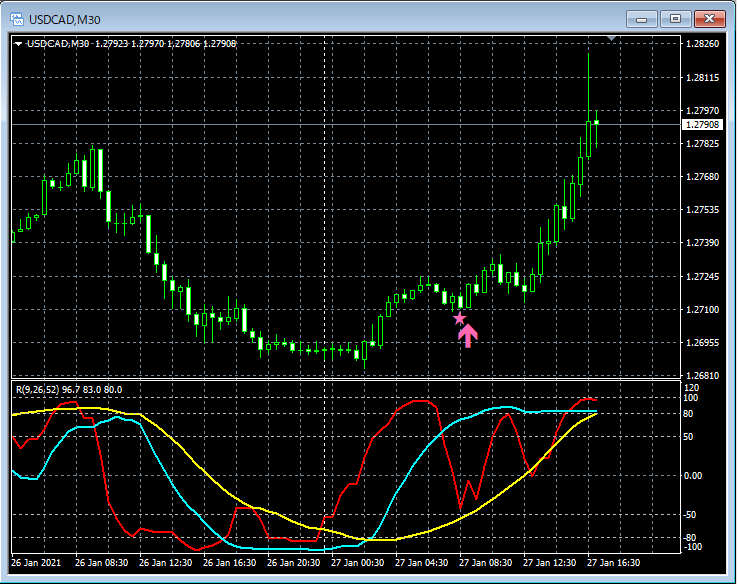 RCI3本ラインとの組み合わせで威力を発揮するインジケーター 1月25日~1月29日に見られたサインの例