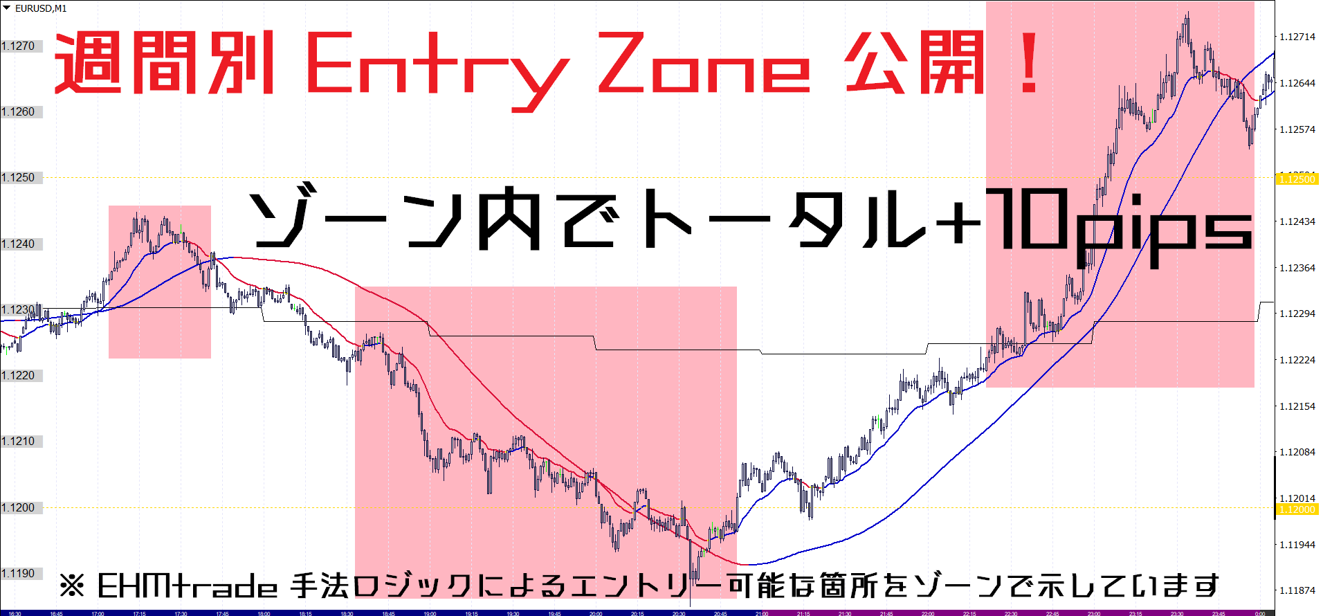 ■EHMtradeのロジックに従ったエントリーゾーン(カラー四角)を提示