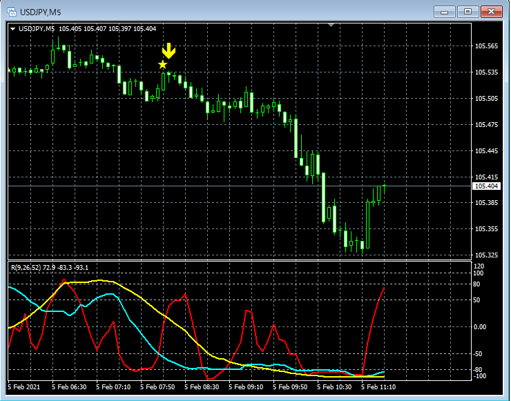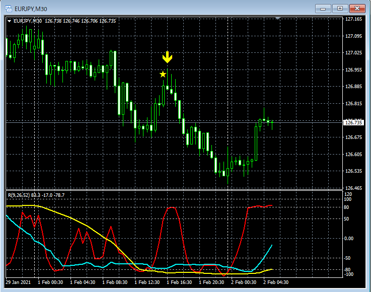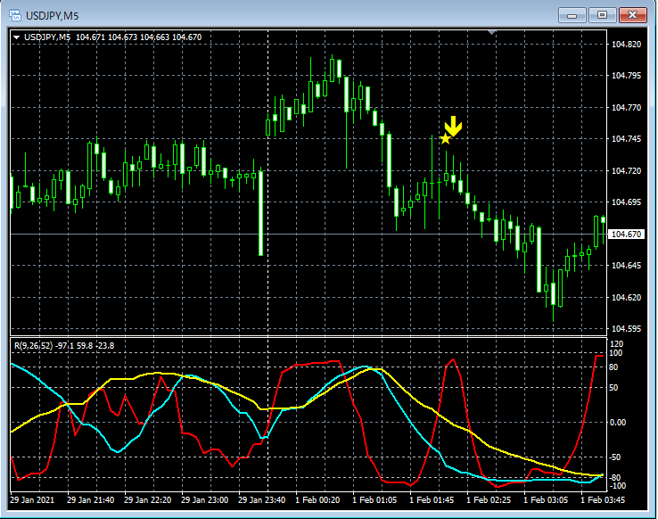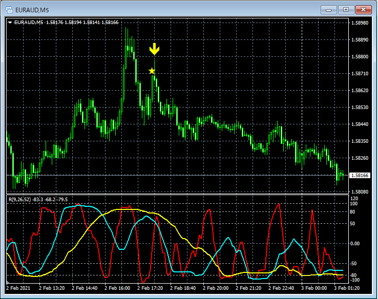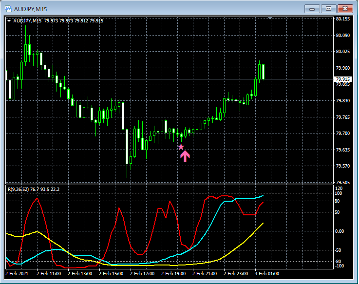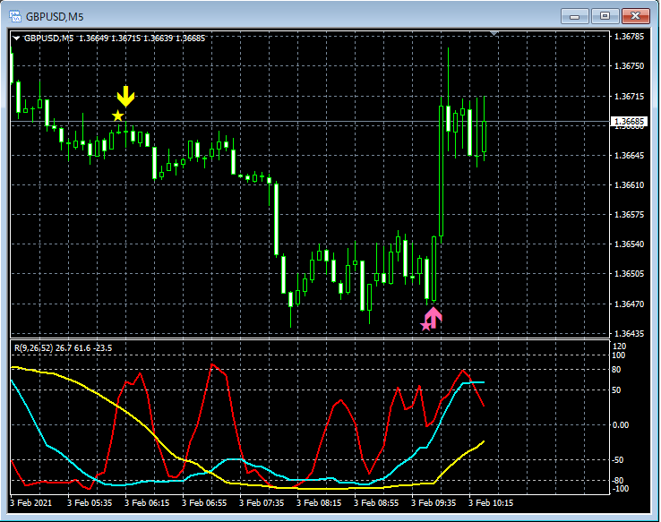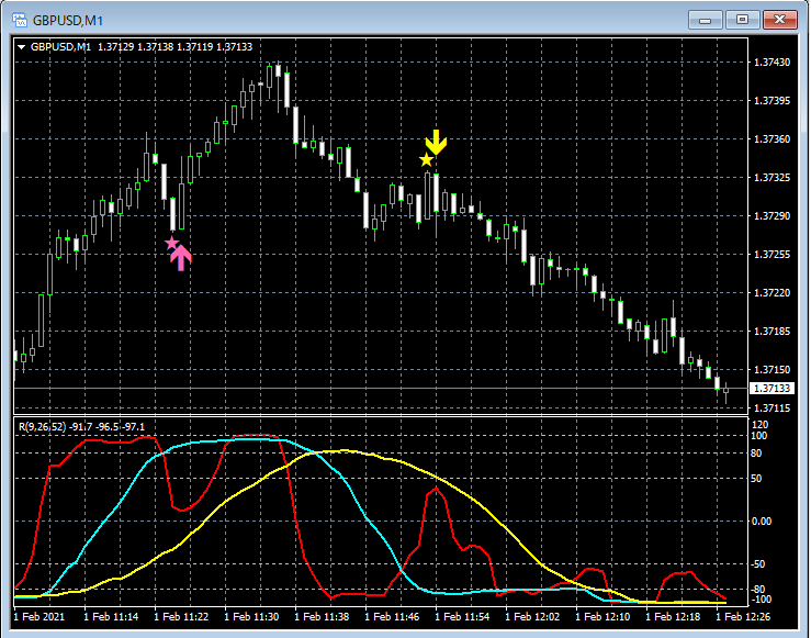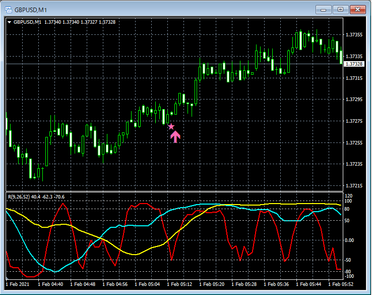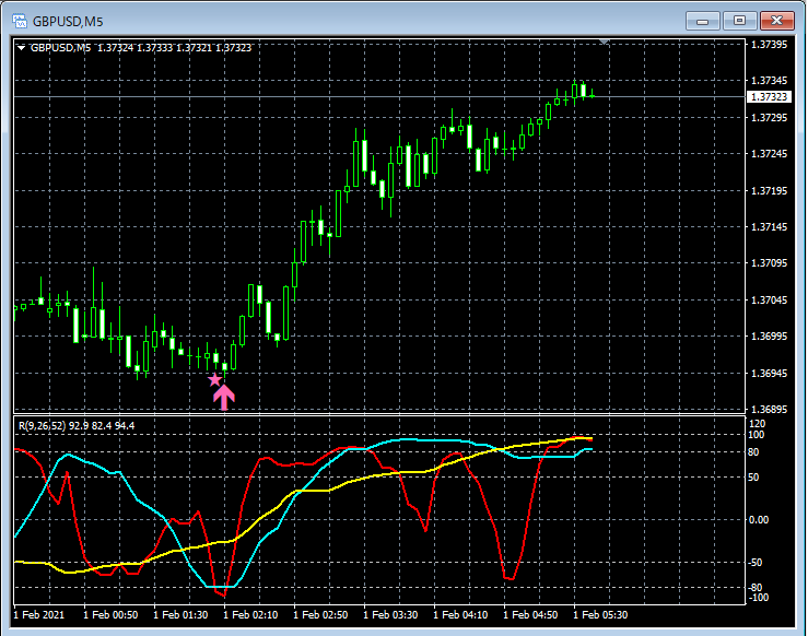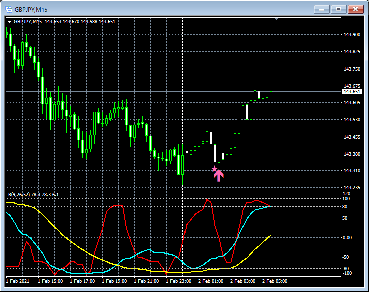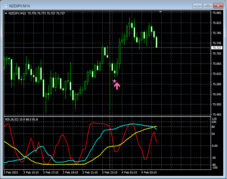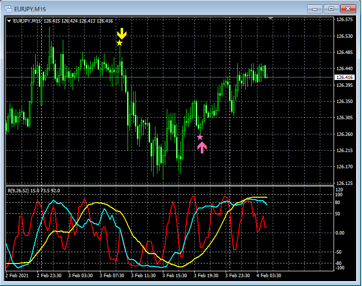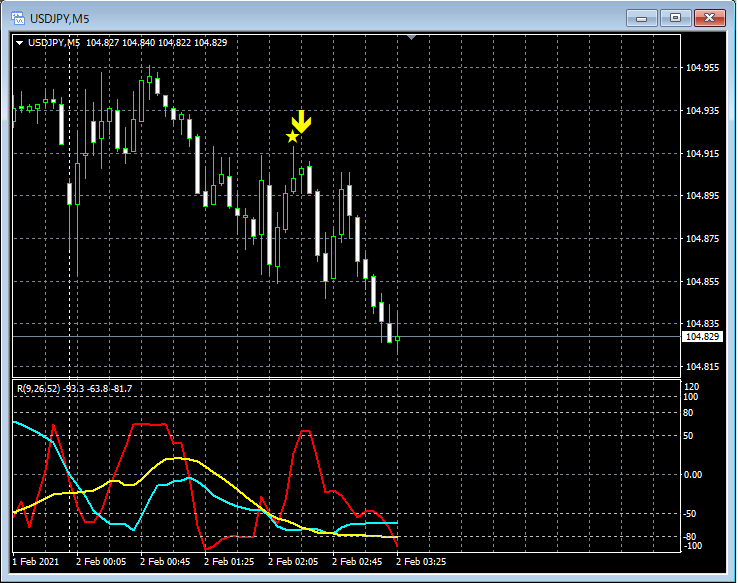 RCI3本ラインとの組み合わせで威力を発揮するインジケーター 2月1日~2月5日に見られたサインの例