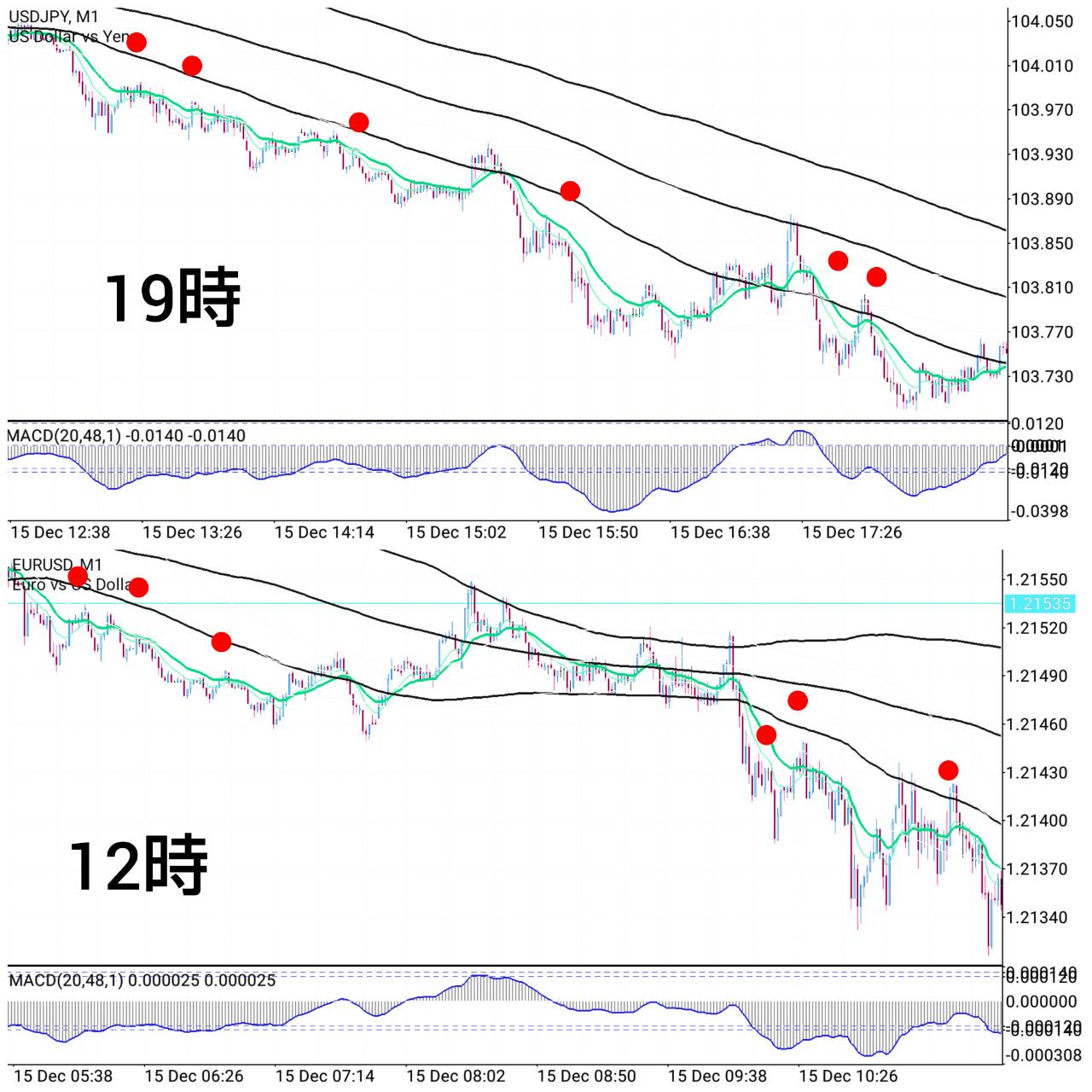 【2020/12/15のエントリー】5分足がレンジで、1分足で合間を取る