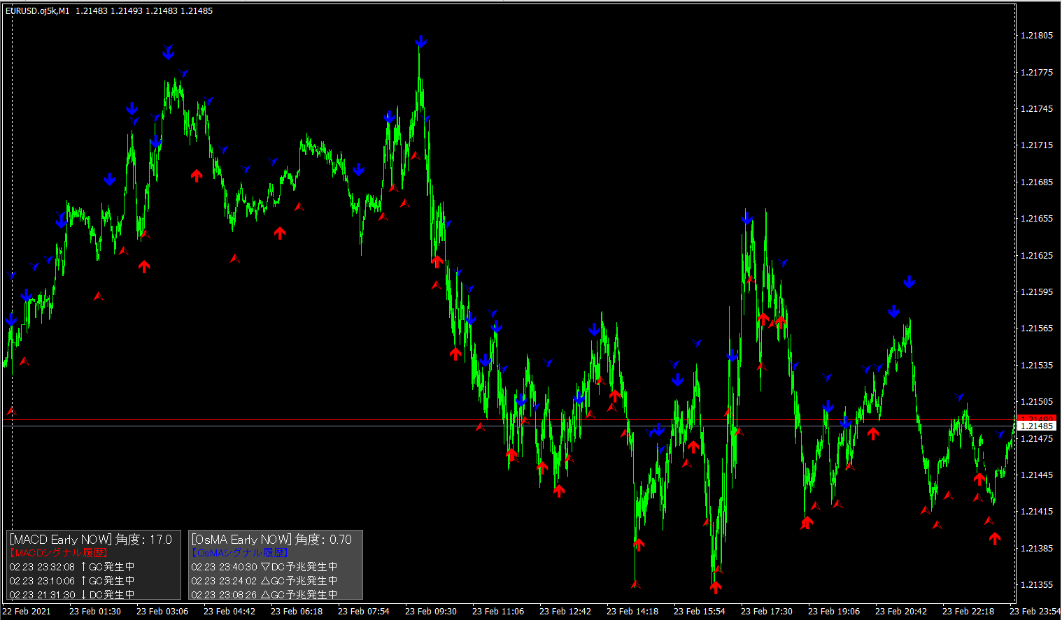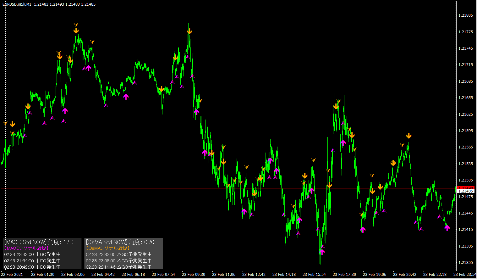 ユーロドル MACD/OsMA ころぽっくる~角度が命シリーズ~ 2/23売買サイン公開