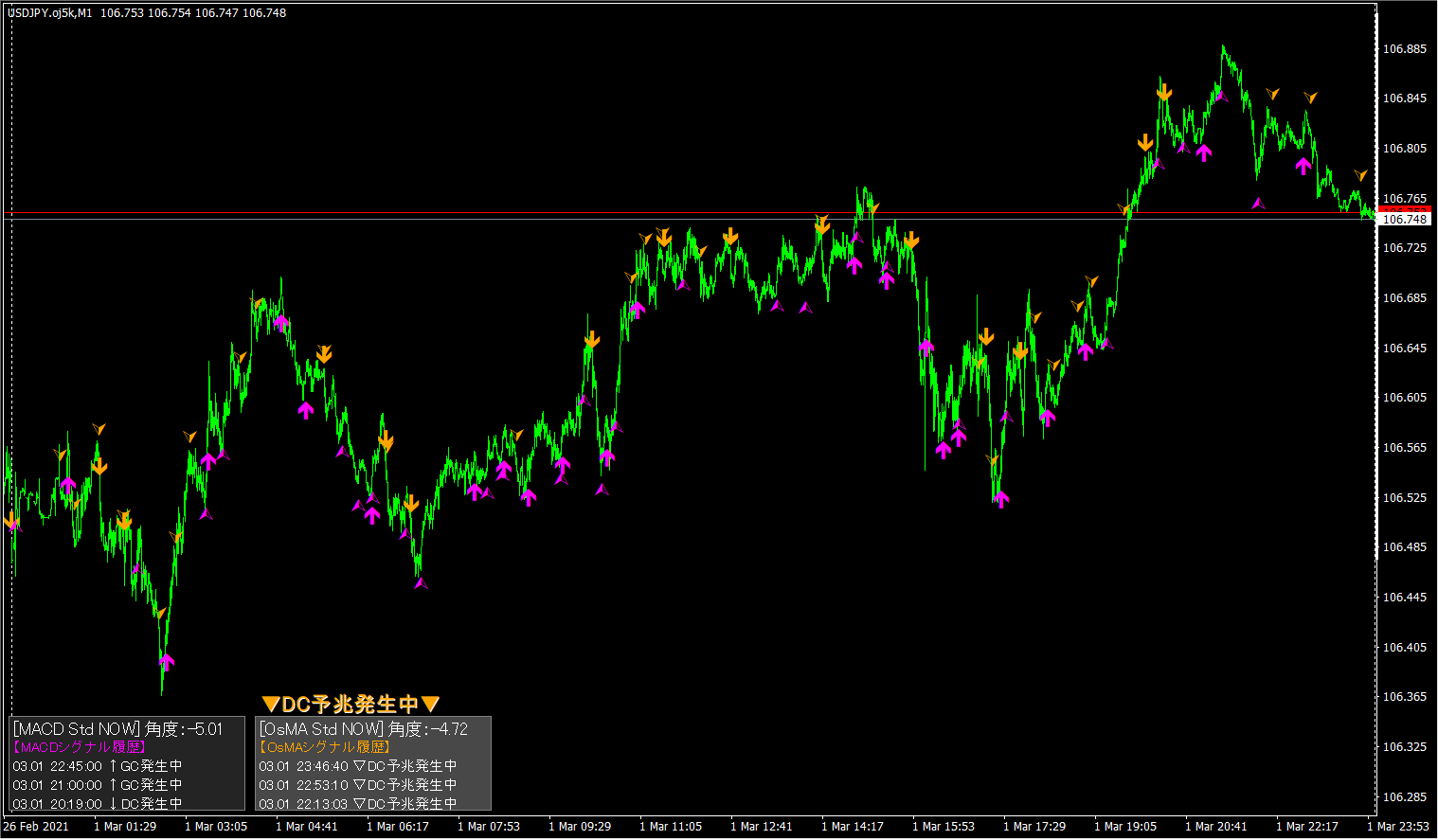 ドル円 MACD/OsMA ころぽっくる~角度が命シリーズ~ 3/1売買サイン公開