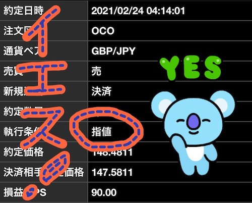 2月19日の買いが、2月24日利確しました。あさぽん調子が戻ってきた良い感じです。