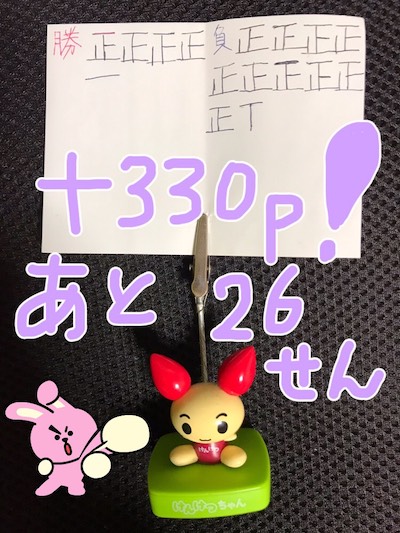 写真に文字を入れたあとさらに1勝して、数字がずれてしまいました。
